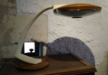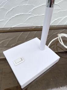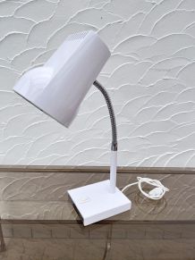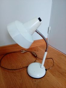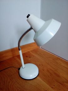 Petite lampe de la marque française Aluminor des années 50, petit modèle), métal couleur gris souris, ampoule baïonnette type e27, fonctionne parfaitement, hauteur 21cm, diamètre socle 9cm, diamètre abat-jour 9cm, bon état.