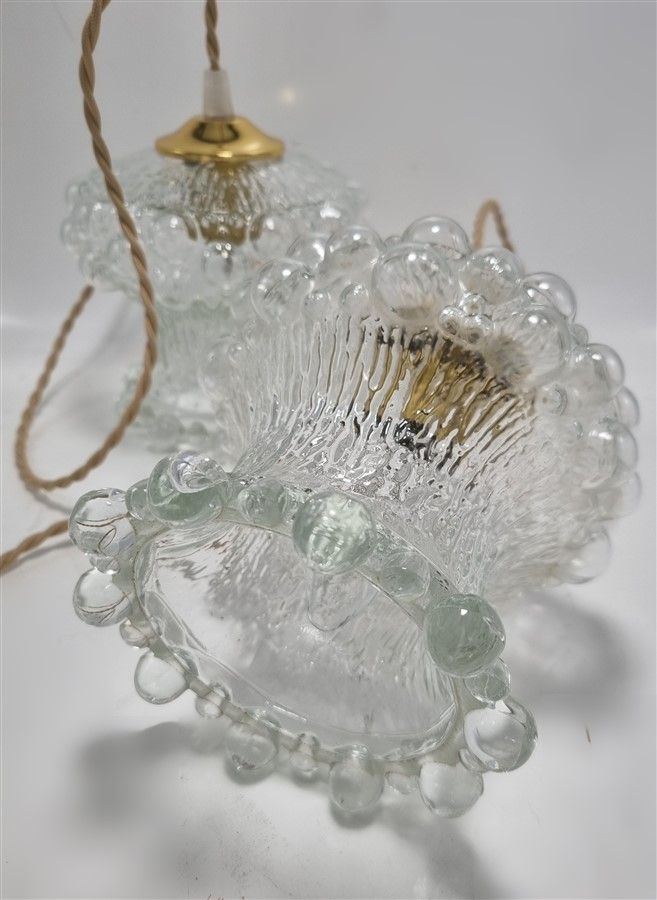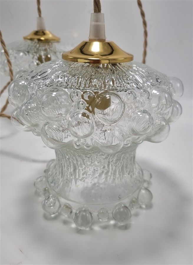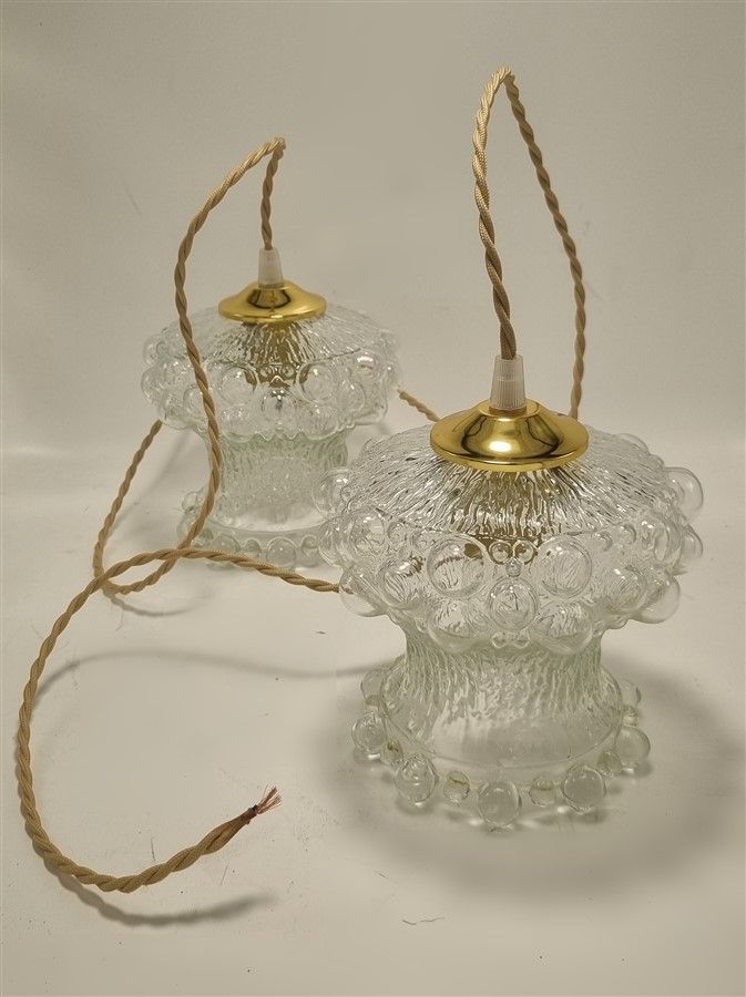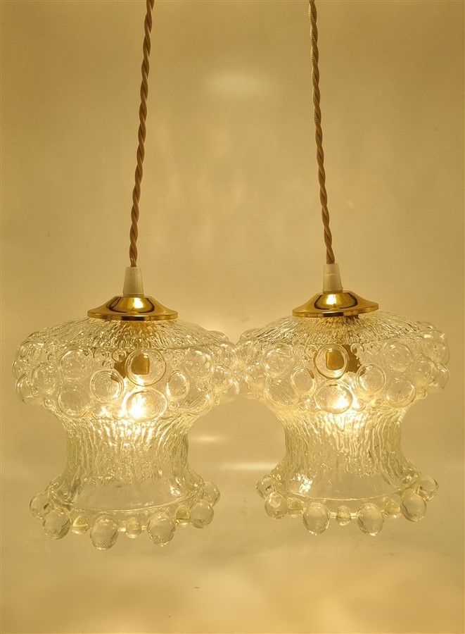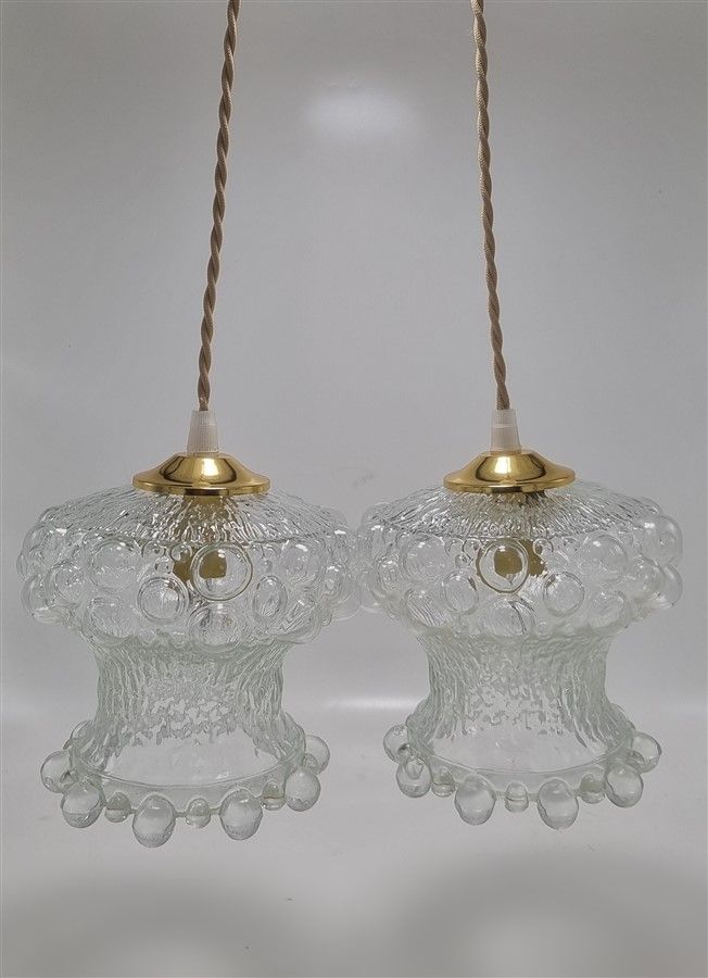 Paire de suspensions vintage originale avec des globes au relief de bulles.