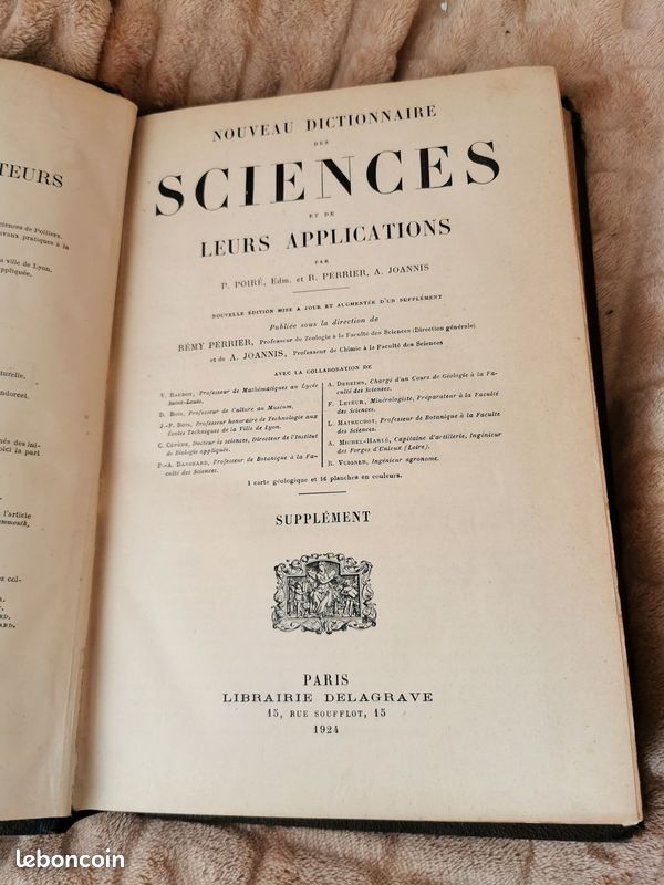 Livre ancien Nouveau Dictionnaire des Sciences et de leurs applications 1924.