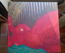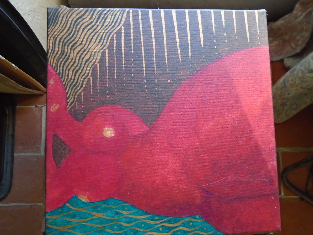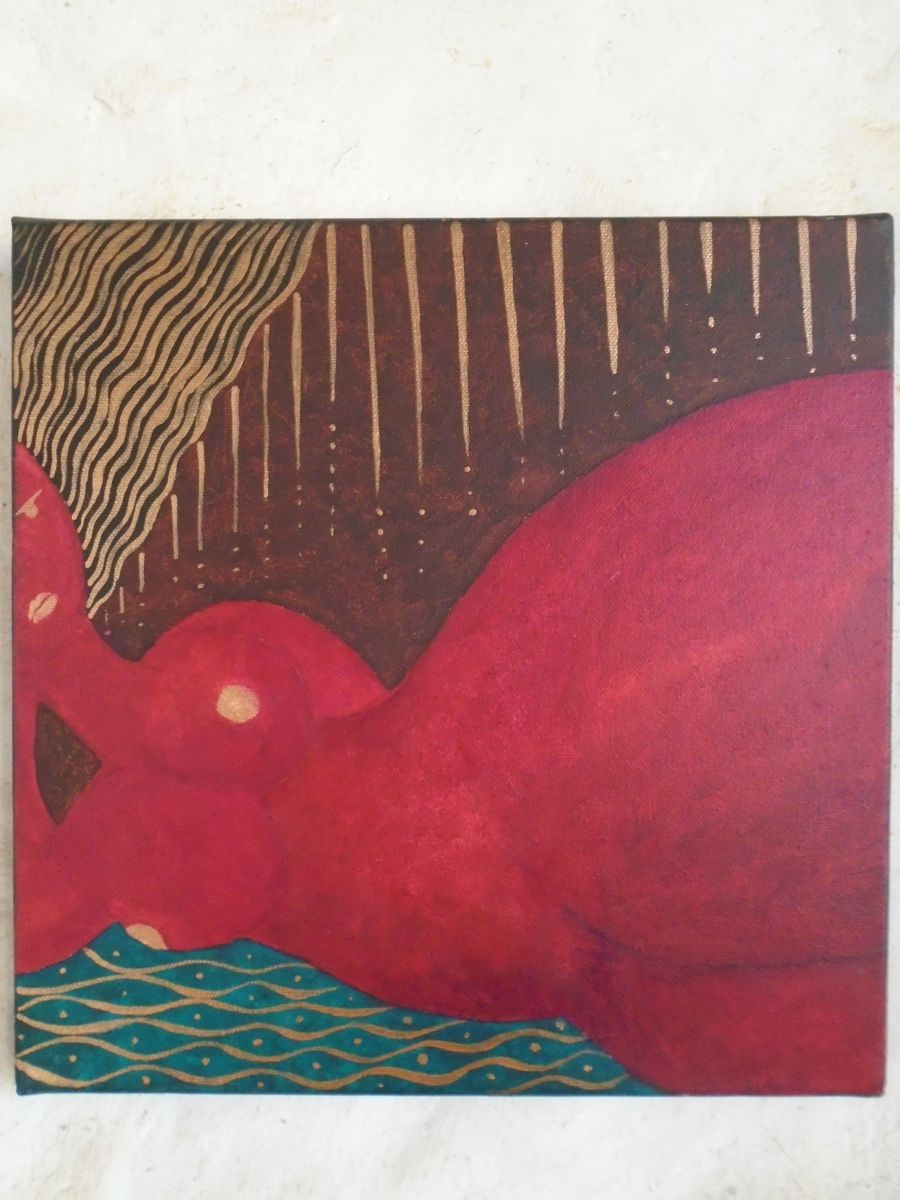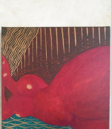 Marque : Peinture acrylique originale signée d'une femme couchée.