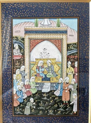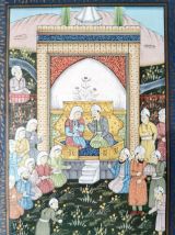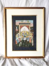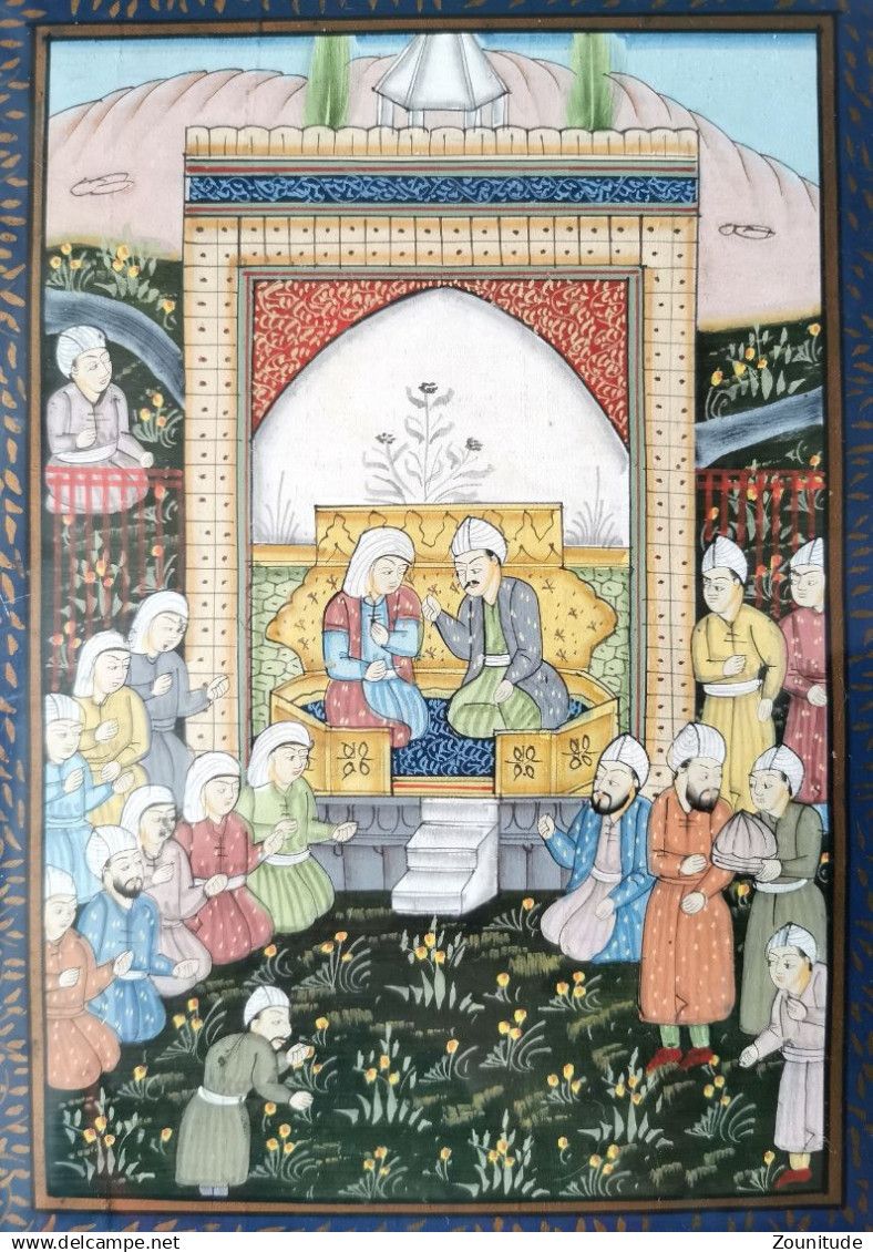tableau oriental, peinture orientale, art persan, décoration murale, cadre doré, scène royale, peinture à la main, art traditionnel, style moghol, décoration exotique, tableau décoratif, cadre élégant, peinture artisanale, œuvre d’art orientale, tableau persan, décoration chic, inspiration orientale, art indien, scène de cour royale.