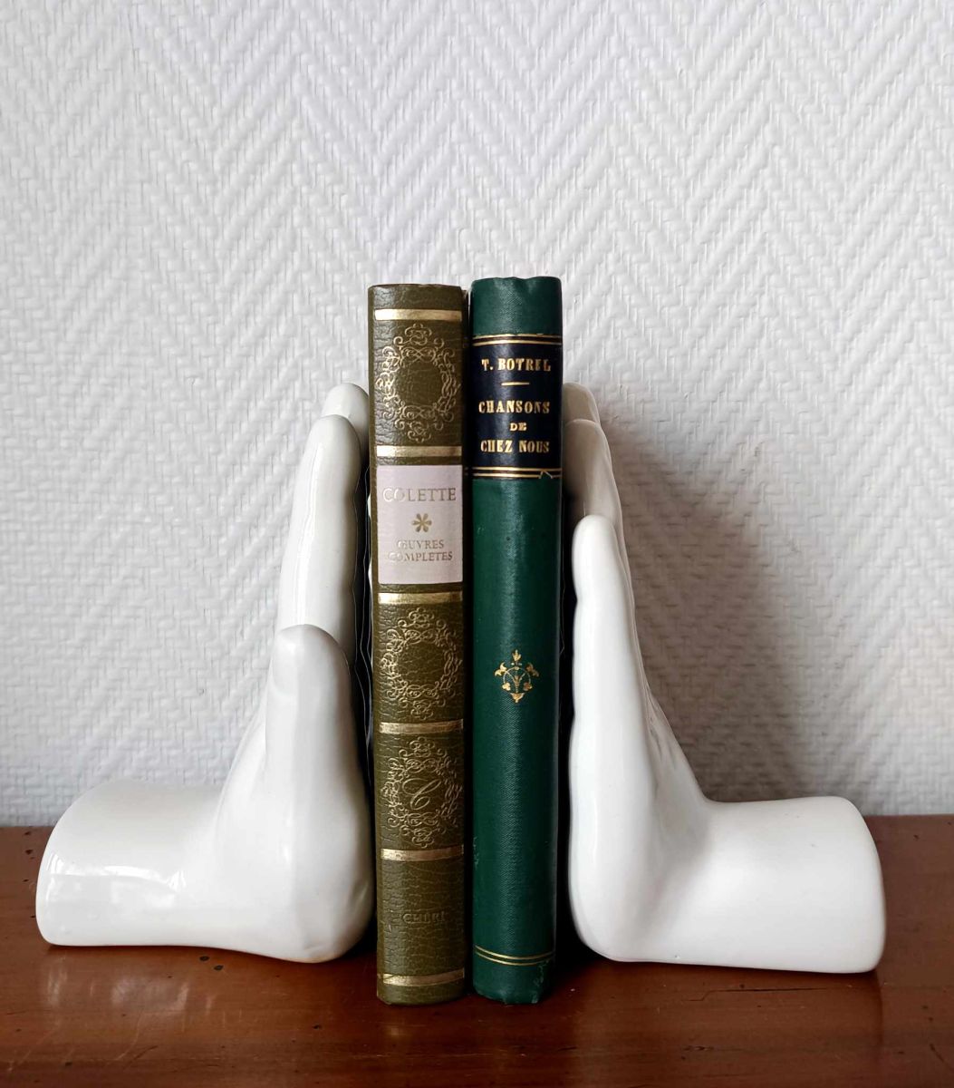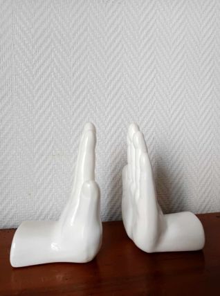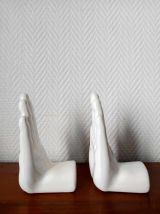 Paire de serre-livres mains en céramique 1970