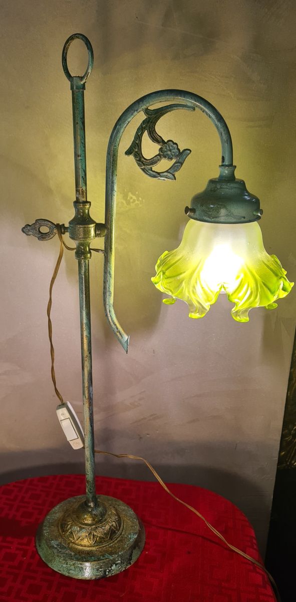lampe laiton et jolie patine antique et tulipe verte opaque , 58x25 merci de bien regarder avant de d acheter