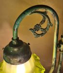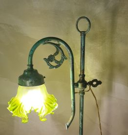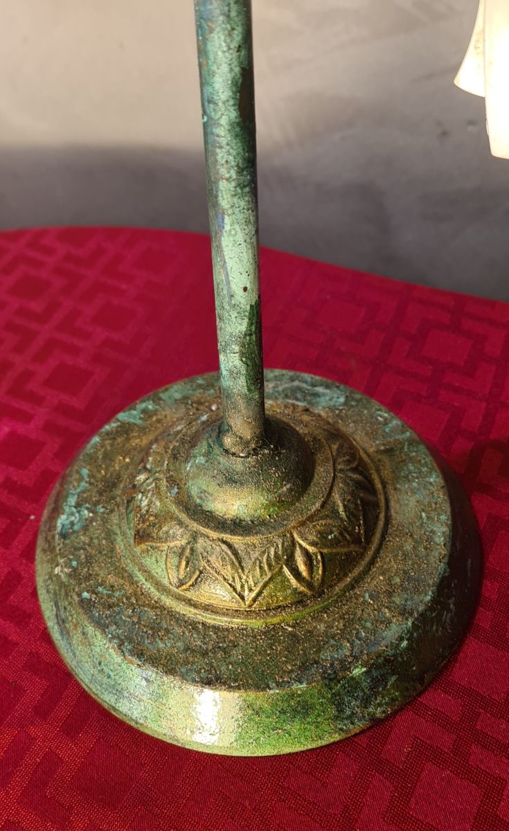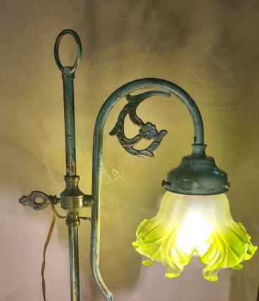 lampe laiton et jolie patine antique et tulipe verte opaqu
