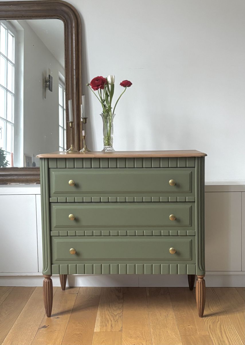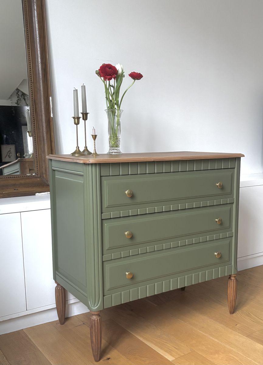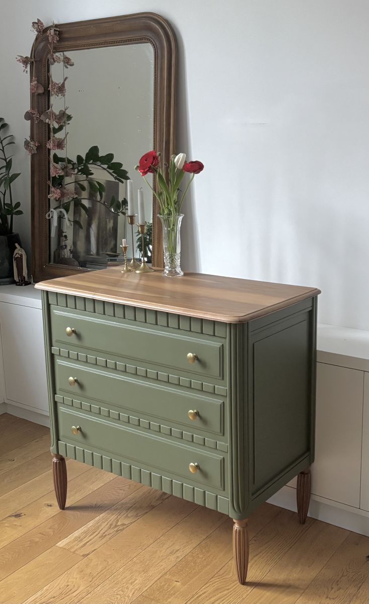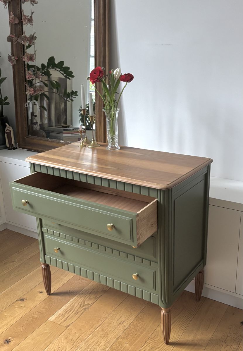 Elégante commode années 30/40 avec de jolis pieds cannelés.