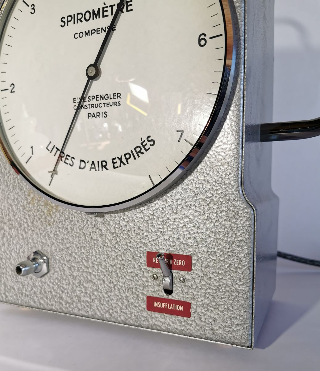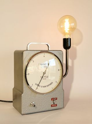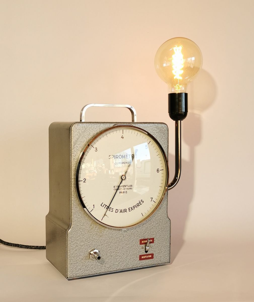 Lampe industrielle vintage métal spiromètre gris "Respire"