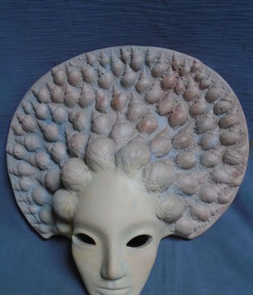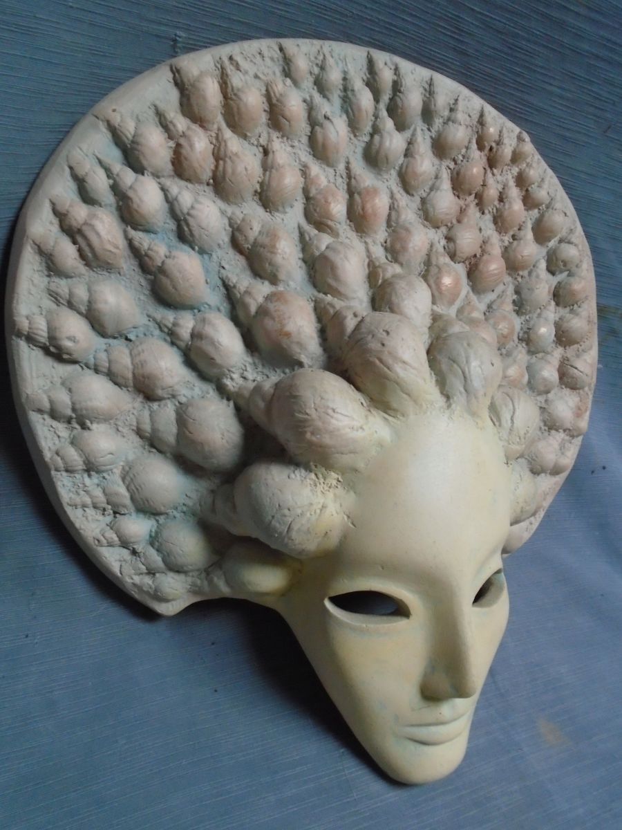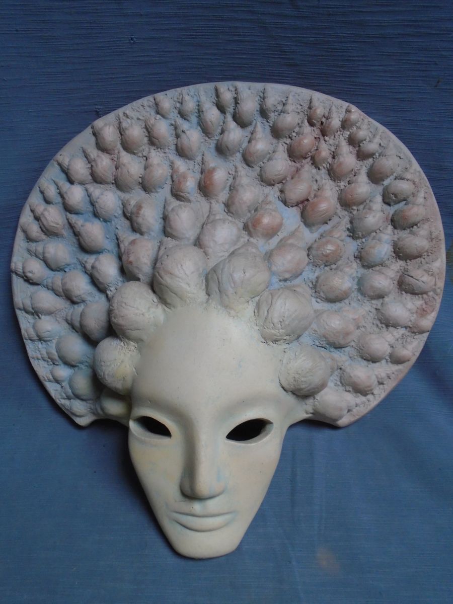 Marque : Masque décoratif en terre cuite peinte ,pièce unique signée