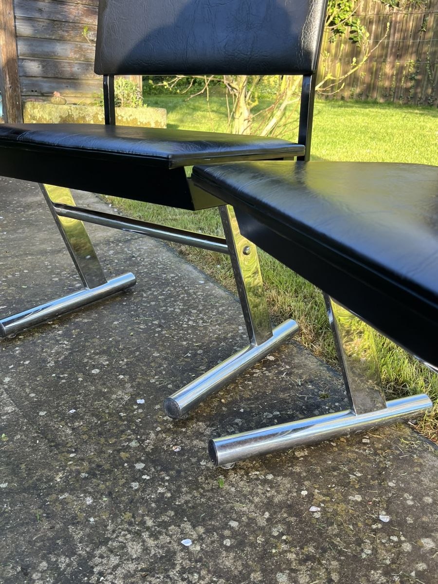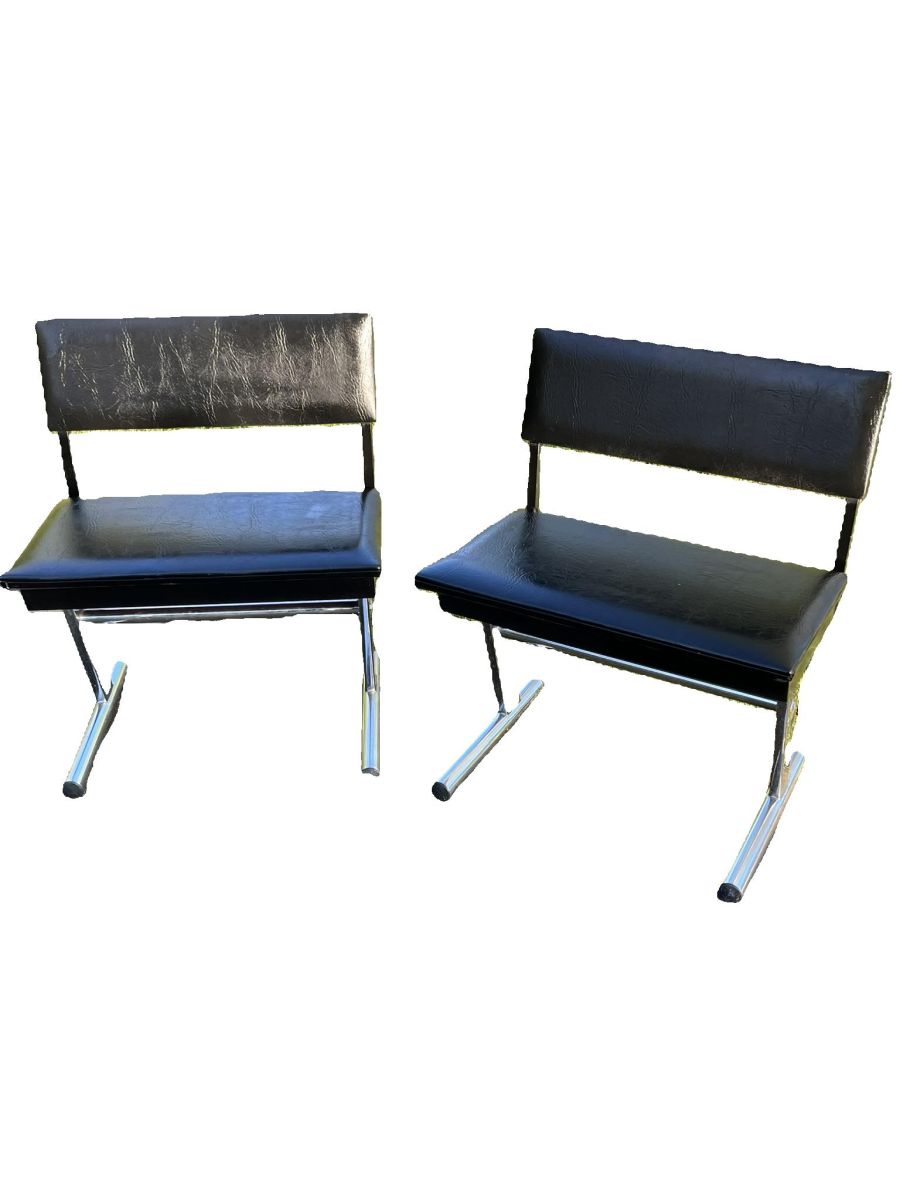 Superbe duo de bancs design des années 80 structure en métal noir et pied en z chromé.
