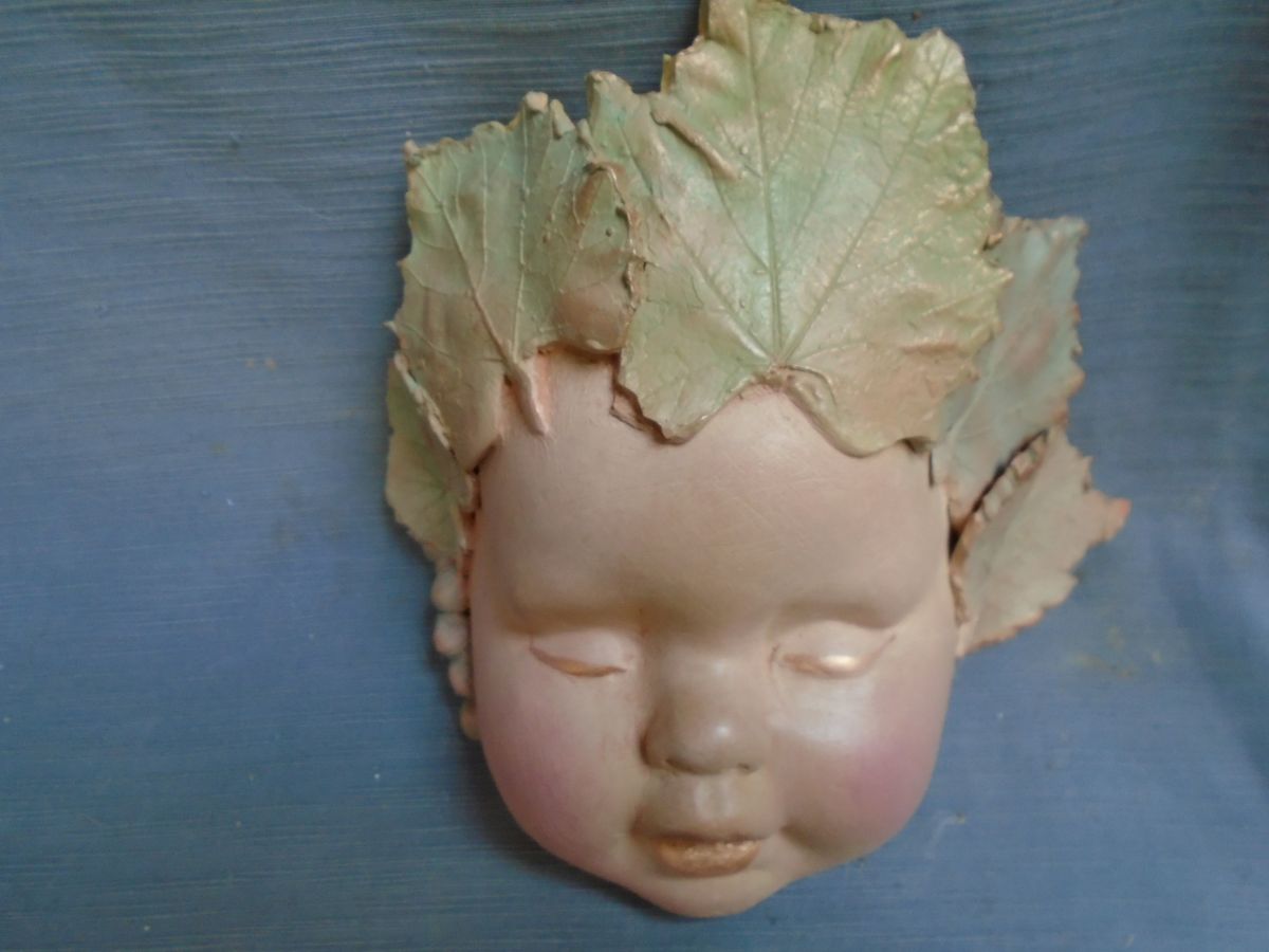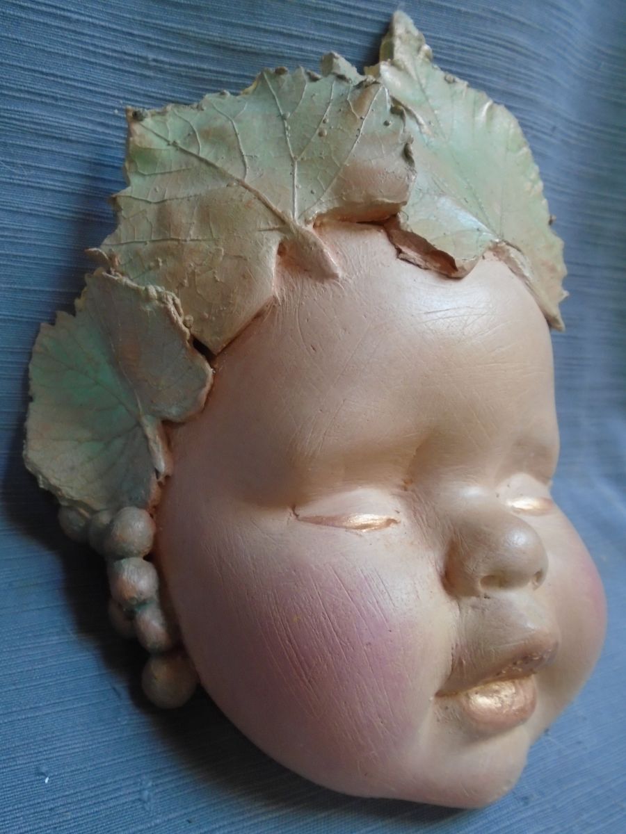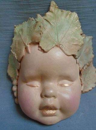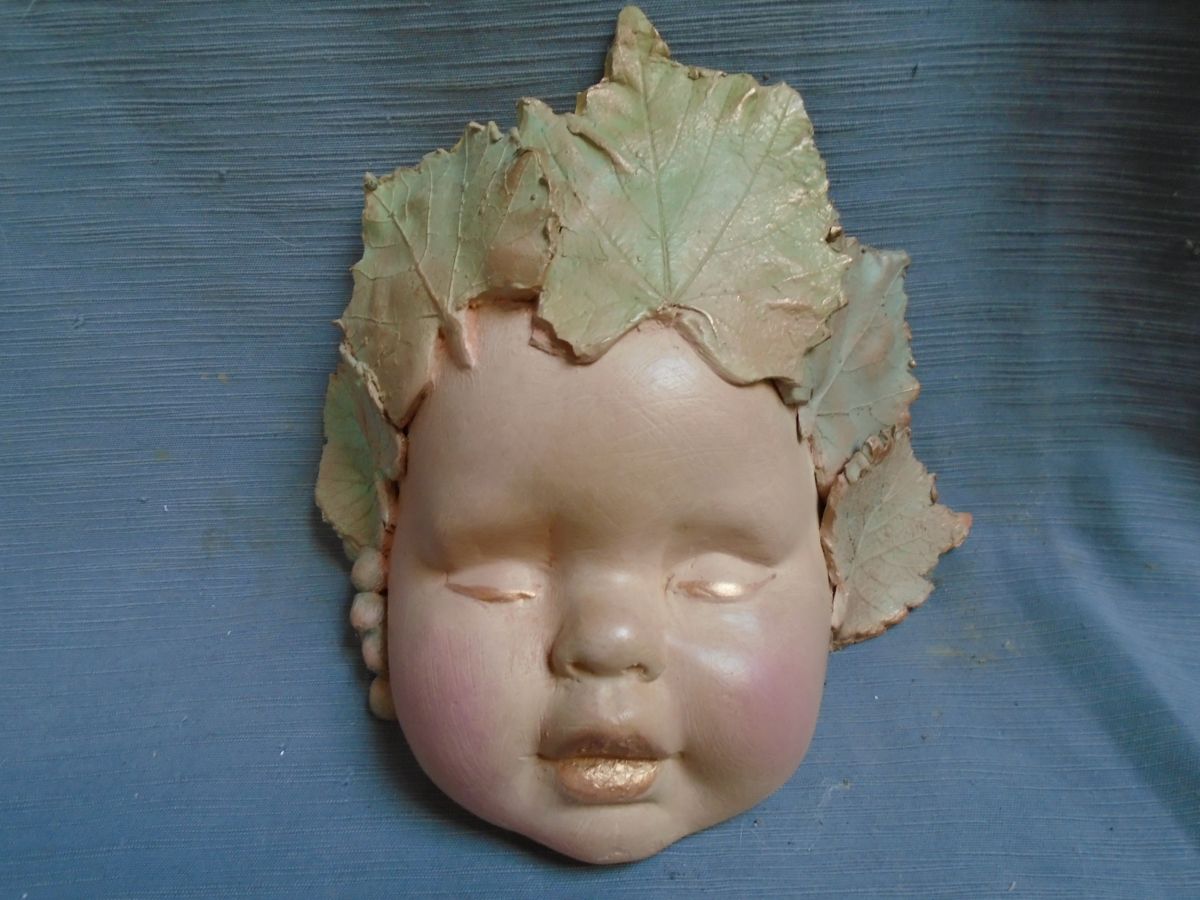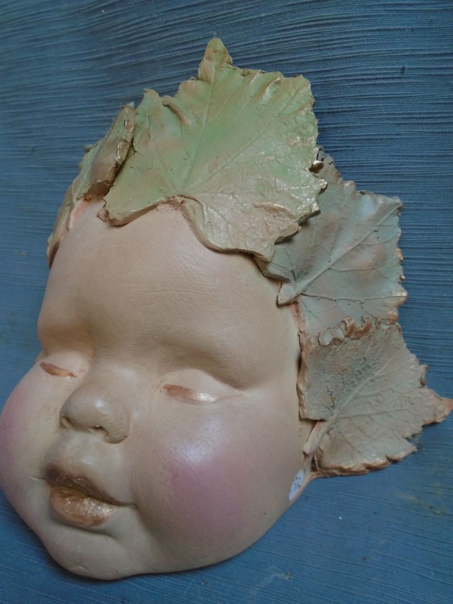 Marque : Masque décoratif aux feuilles de vignes ,pièce unique signée.