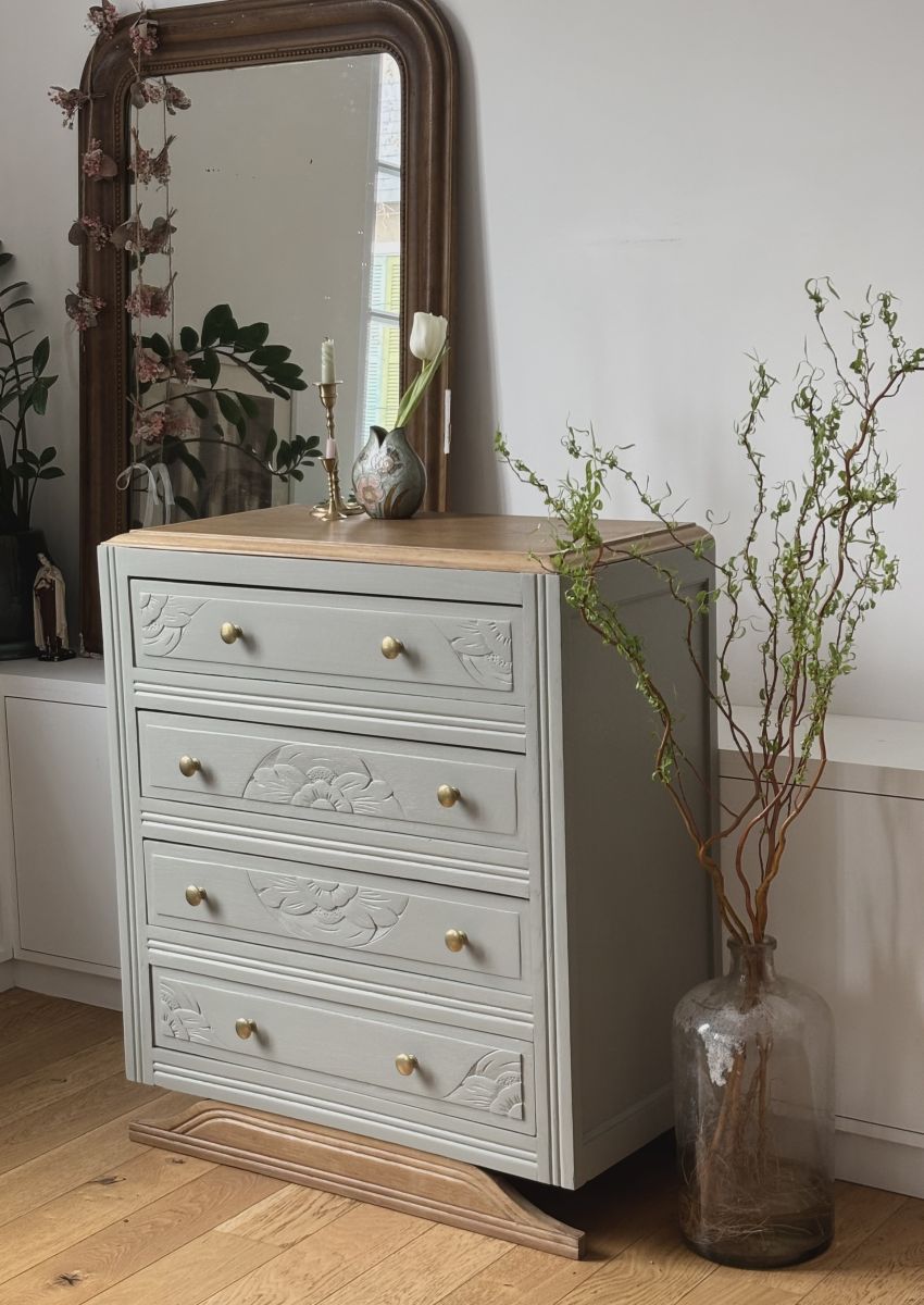 Elle a été mise en beauté avec la douce nuance "Gris chaud" de chez Ressource.