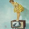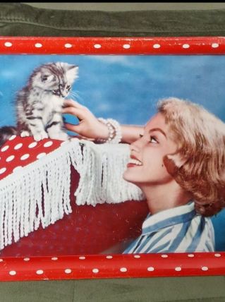 PLATEAU MÈTAL ANNÈE 50/60 ROUGE DAME avec SON CHATON