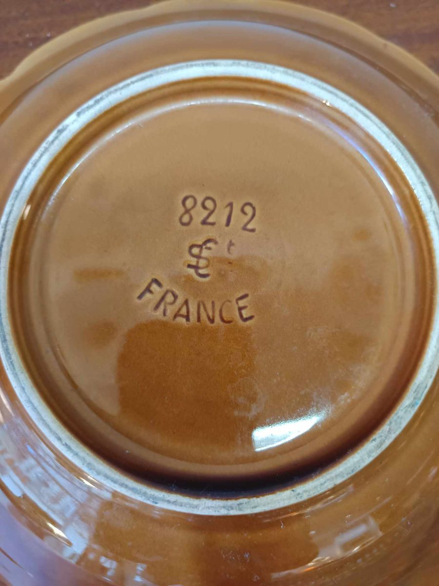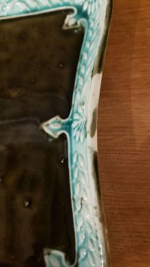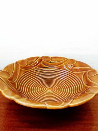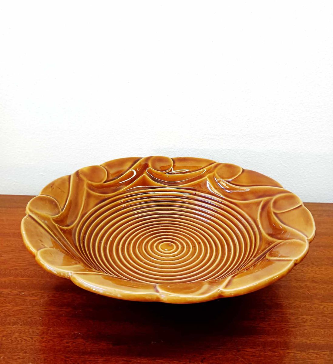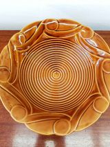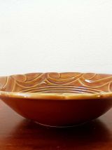 Coupe à fruits à décors de spirales et volutes, céramique émaillée de couleur marron clair.