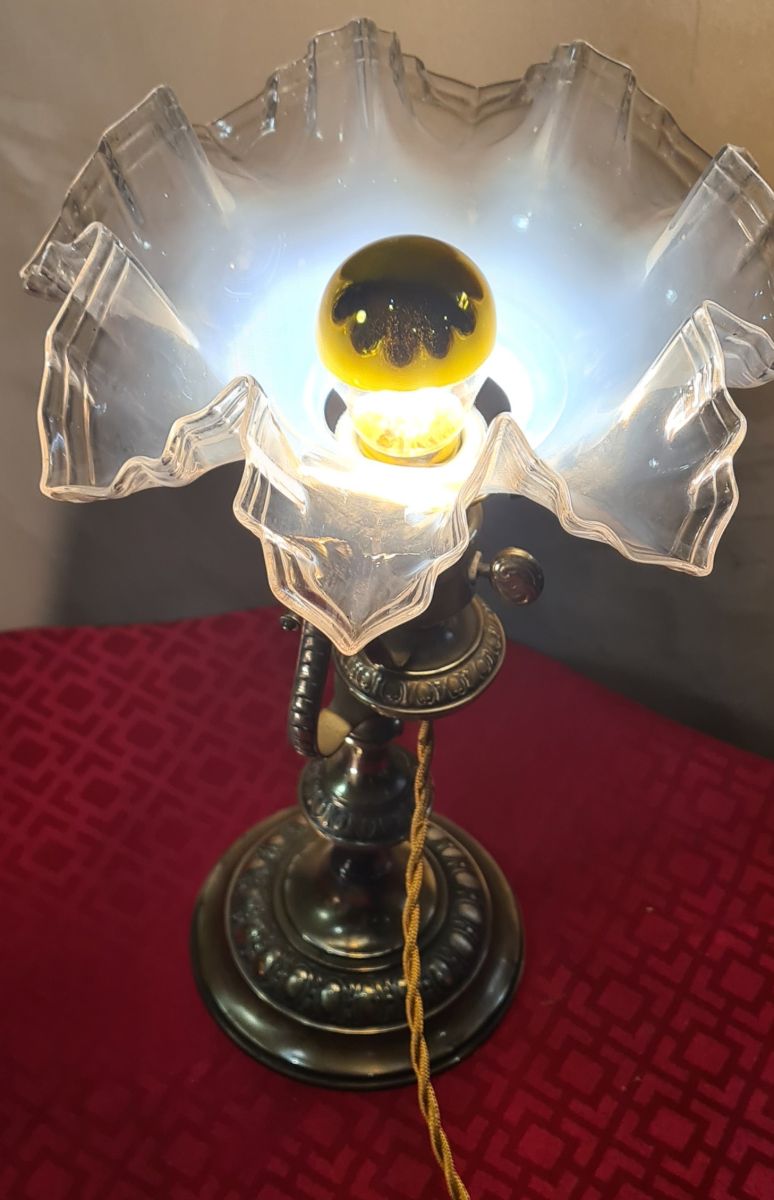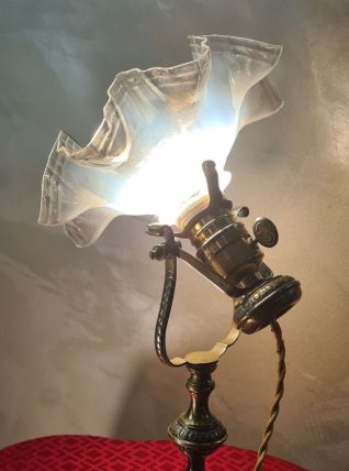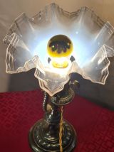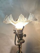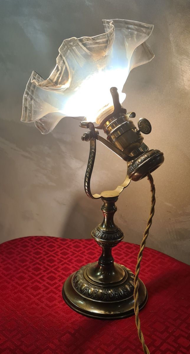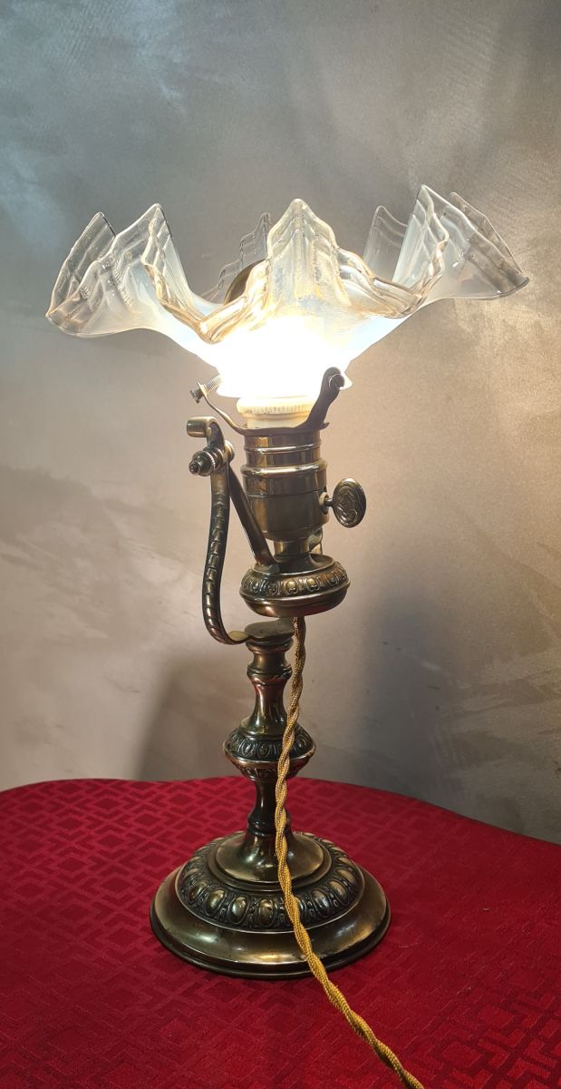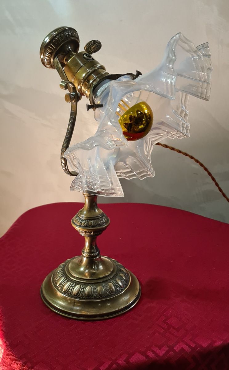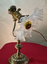 lampe laiton1900 de table abat jour verre dentelle opalissan