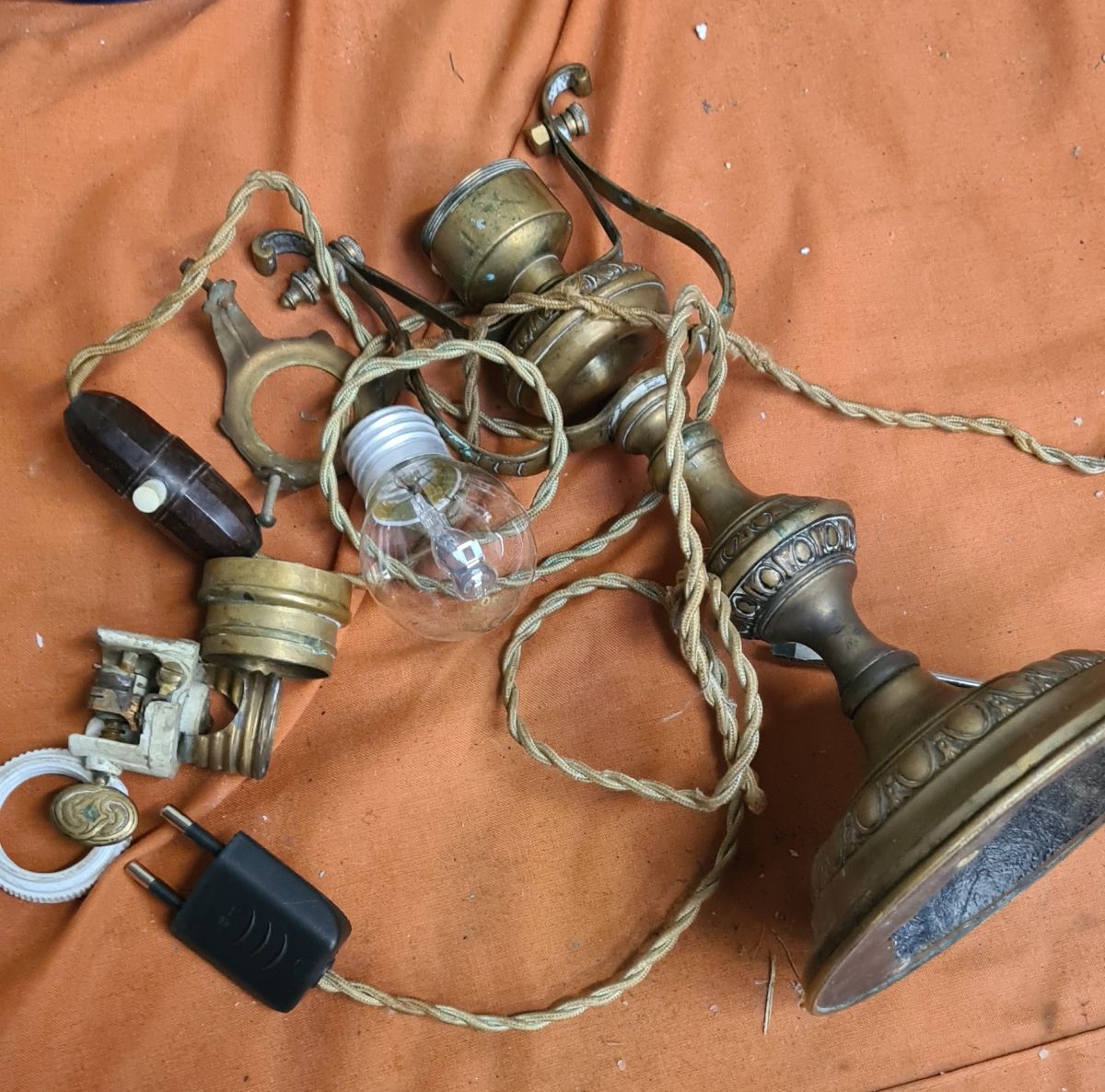 lampe laiton1900 de table abat jour verre dentelle opalissant