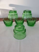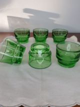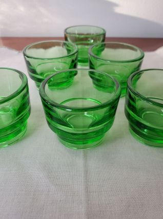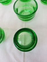 5 verres à liqueur, ou coquetiers, en verre vert, LEVER