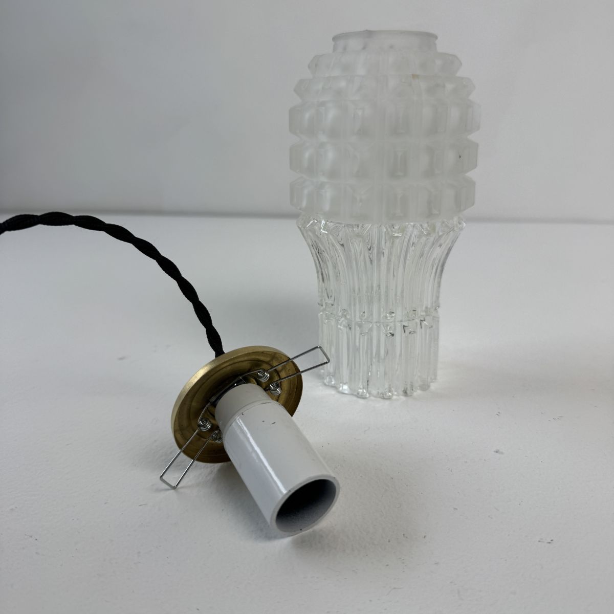 Electricité refaite à neuf avec fil noir en tissu tressé. Prête à brancher par domino. Douille à vis petit culot (E14). En très bel état.