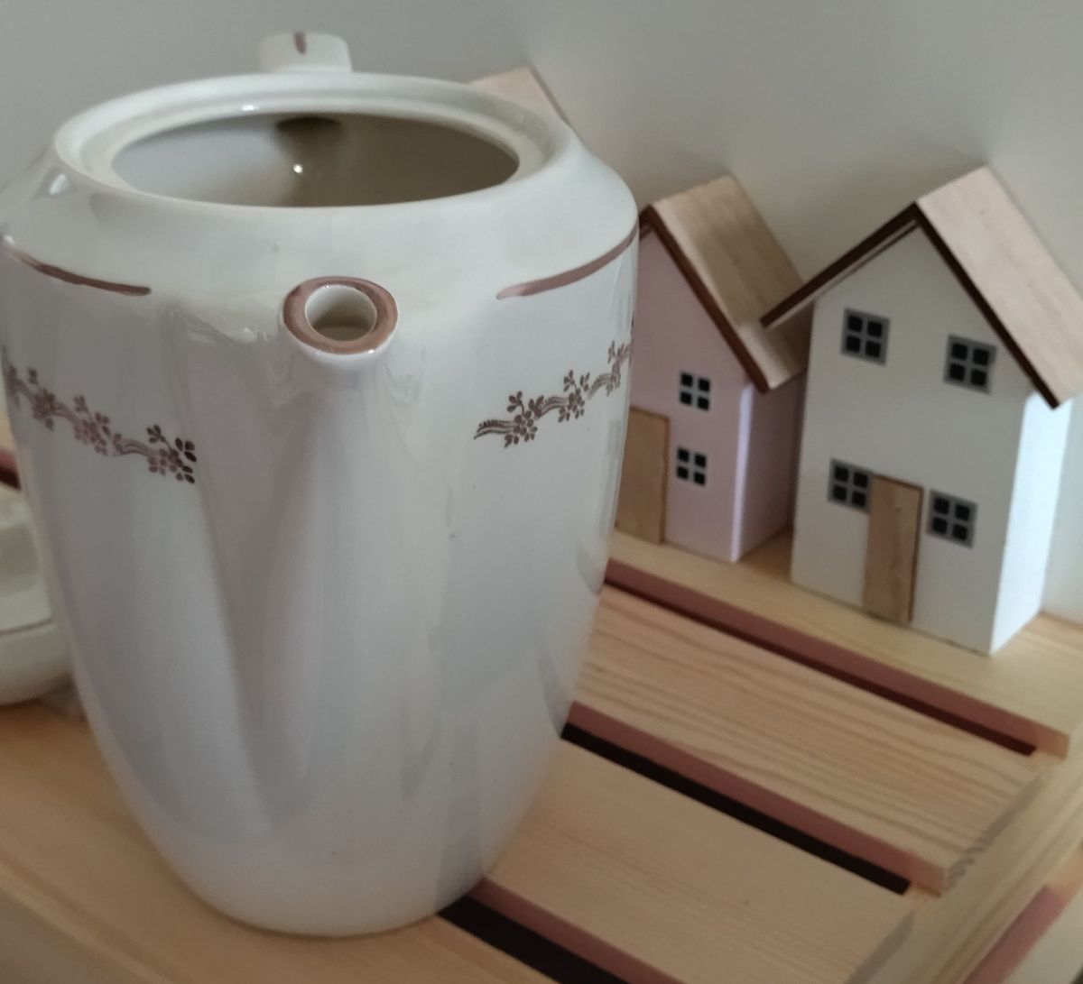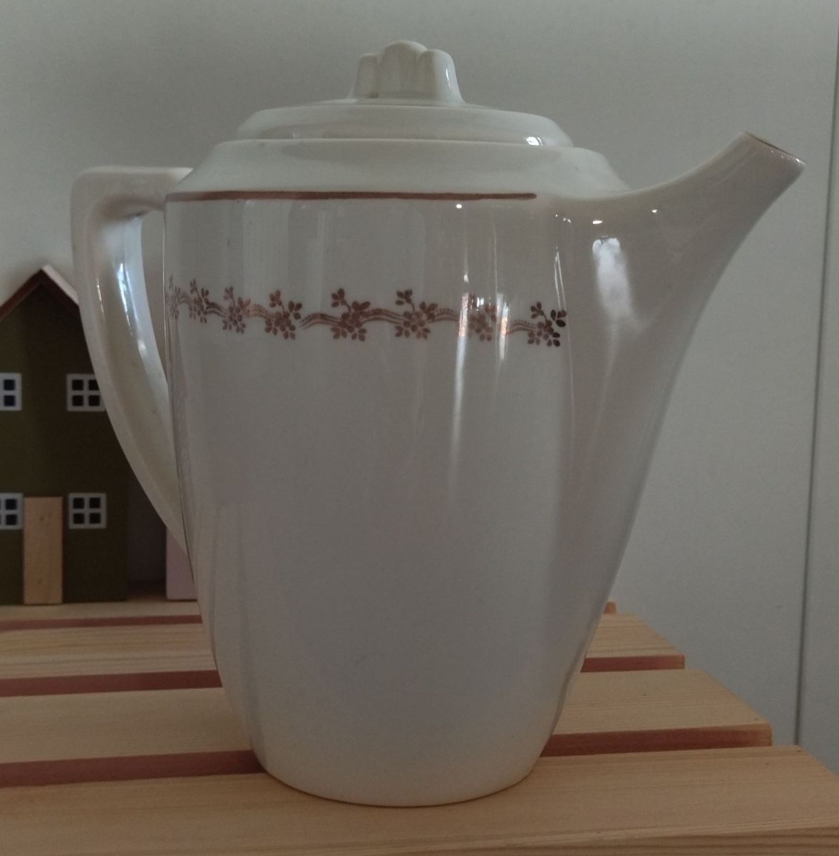 Liséré doré intact au niveau du bec et du haut de la cafetière, ainsi que sur le couvercle