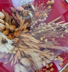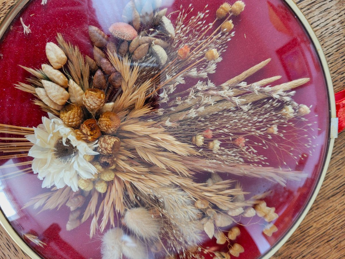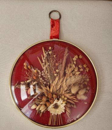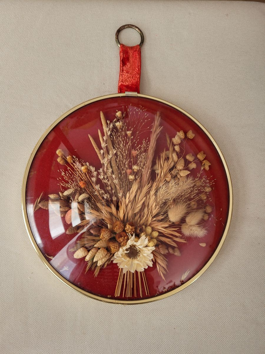 Joli cadre rond vintage. Bel ensemble de fleurs séchées.