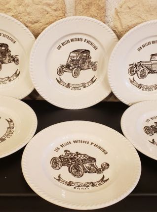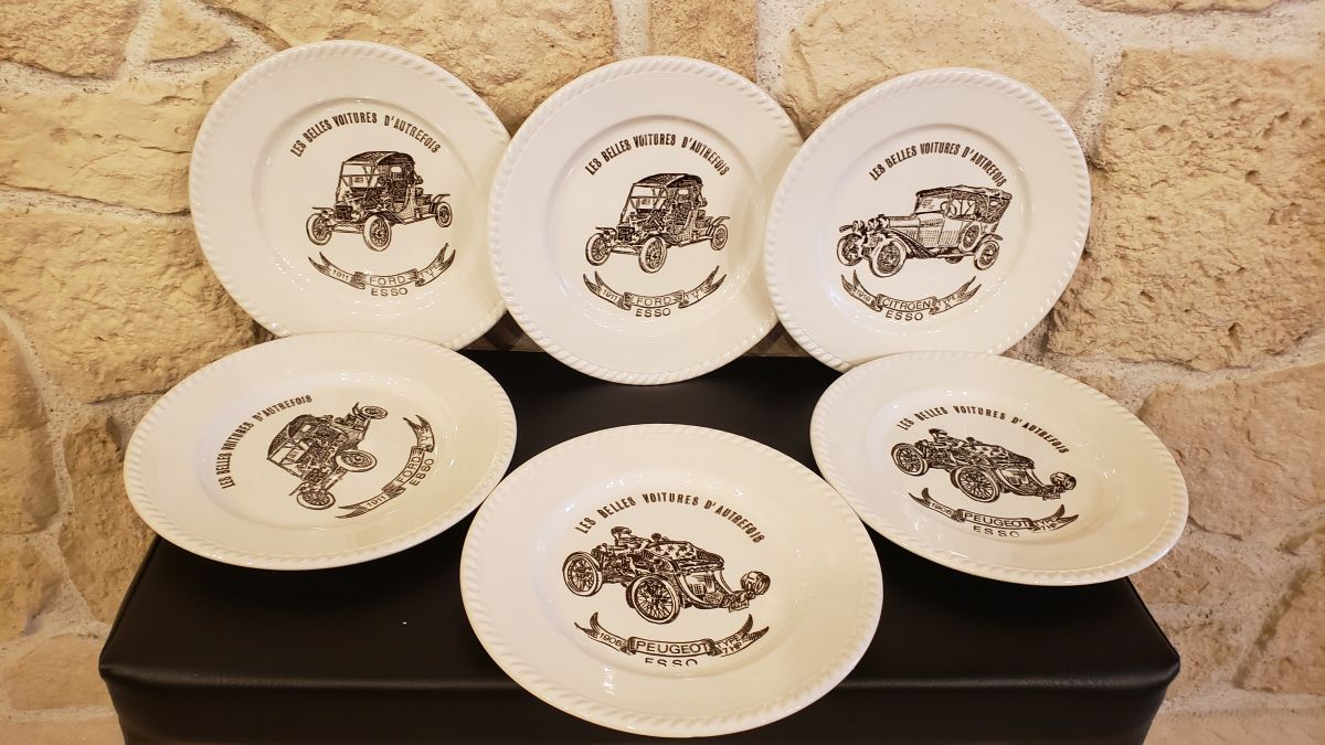 Superbe série d'assiettes vintage éditées par Esso représentant des voitures anciennes.