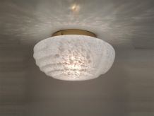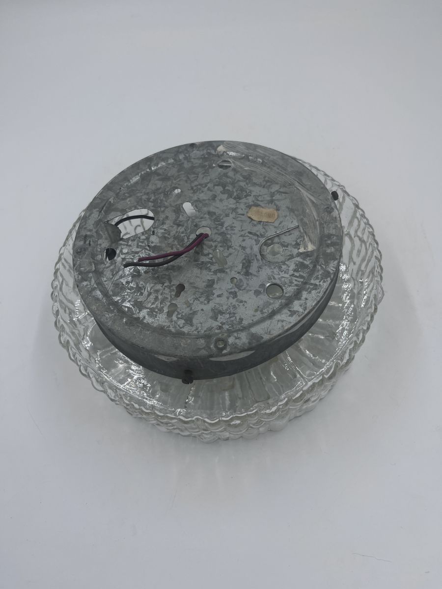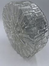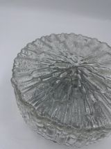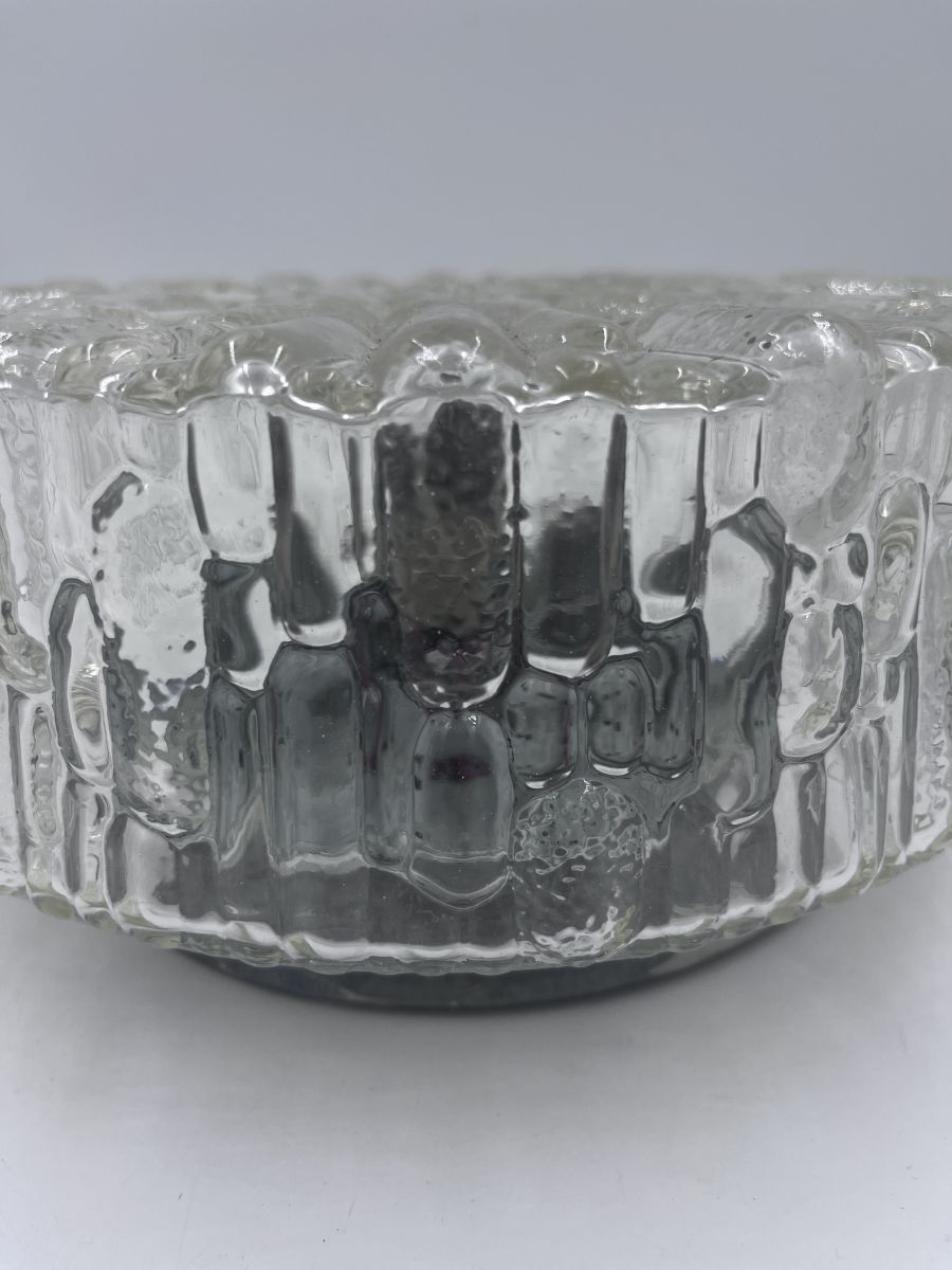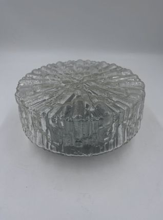 Superbe plafonnier en verre moulé avec du relief, de forme ronde et en parfait état.