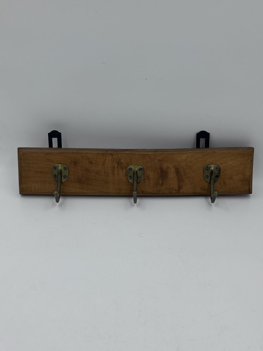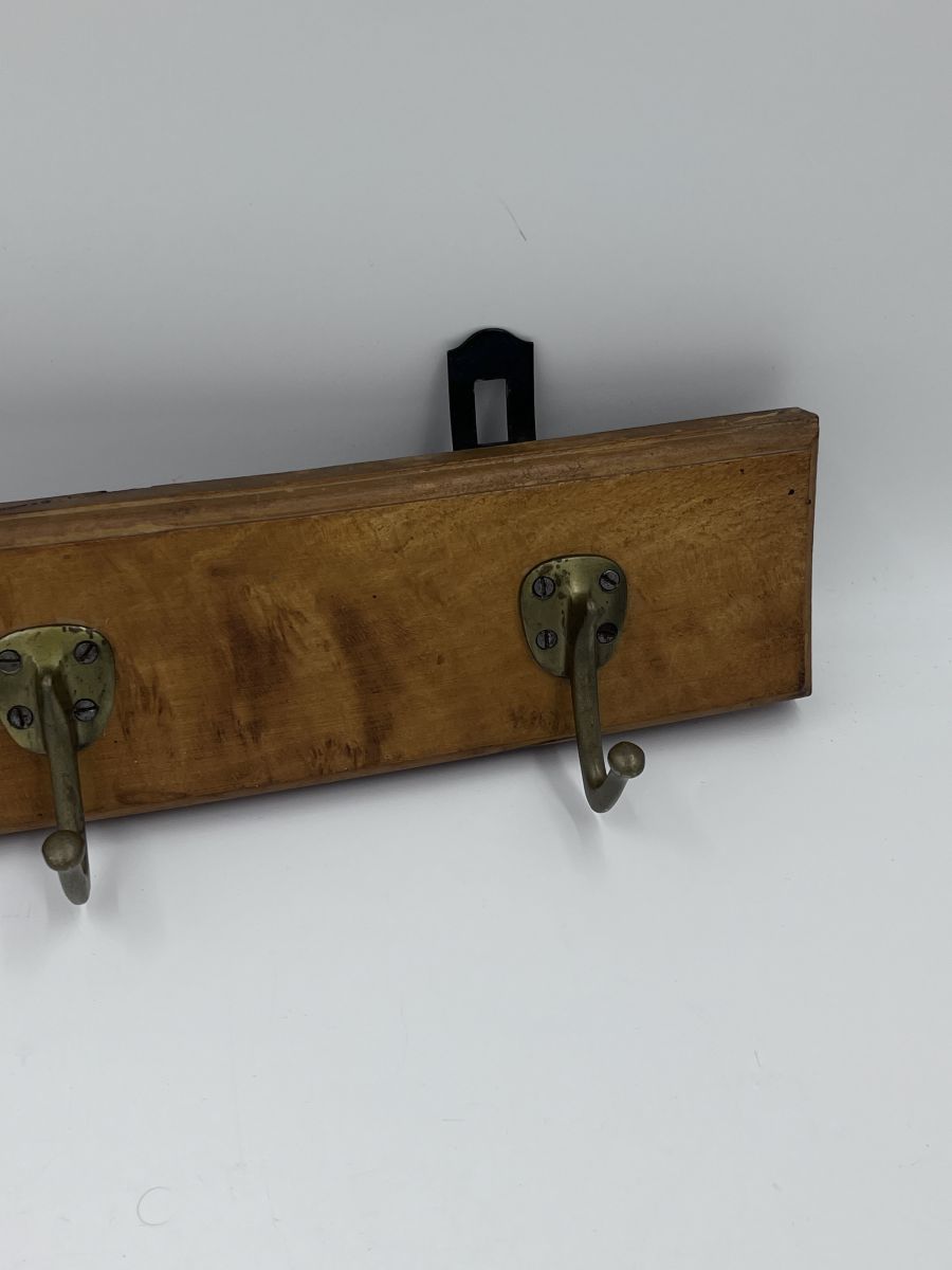 Joli portemanteau en bois se constituant de 3 patères en laiton.
