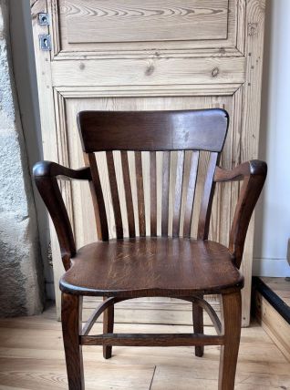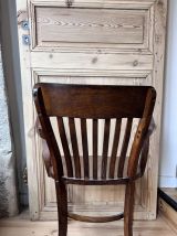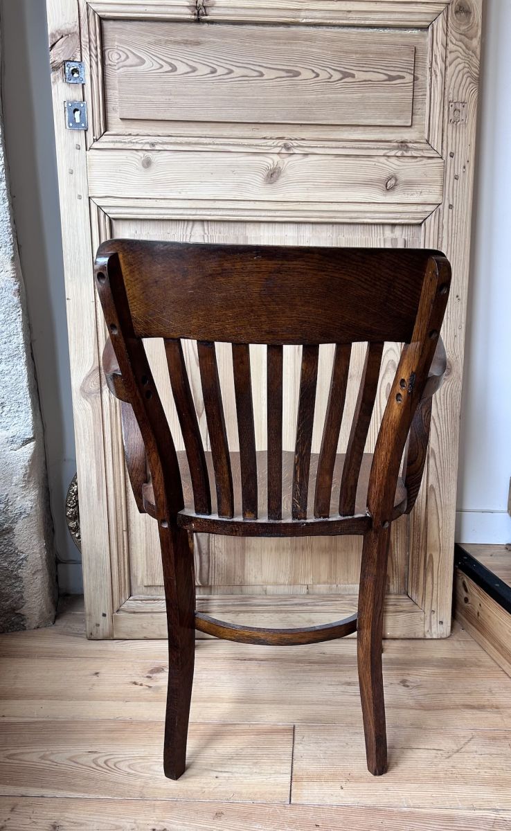 Très bon état, un Fauteuil tout en bois verni, Robuste, Assise droite, Accoudoirs bien en place, jolie et délicate patine. Mesures 45/45 cm et 84 cm de haut. Hauteur assise 43cm.