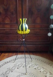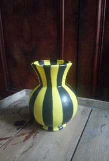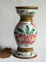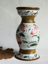 Vase en grès bois Keraluc Quimper. Beau décor fleuri.