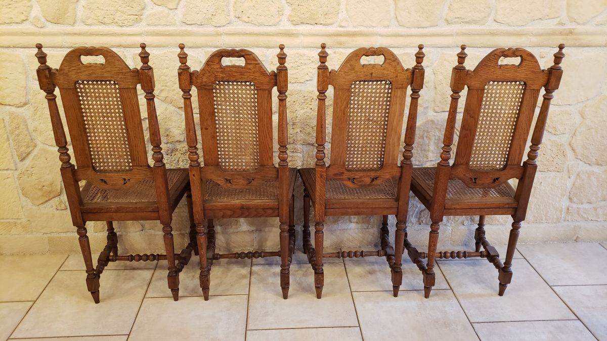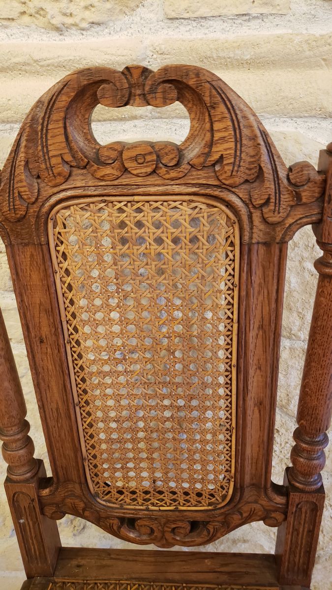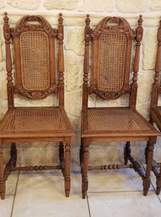 Lot de 4 chaises vintage cannées sculptées