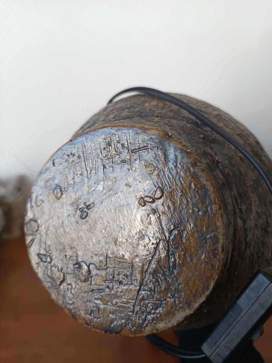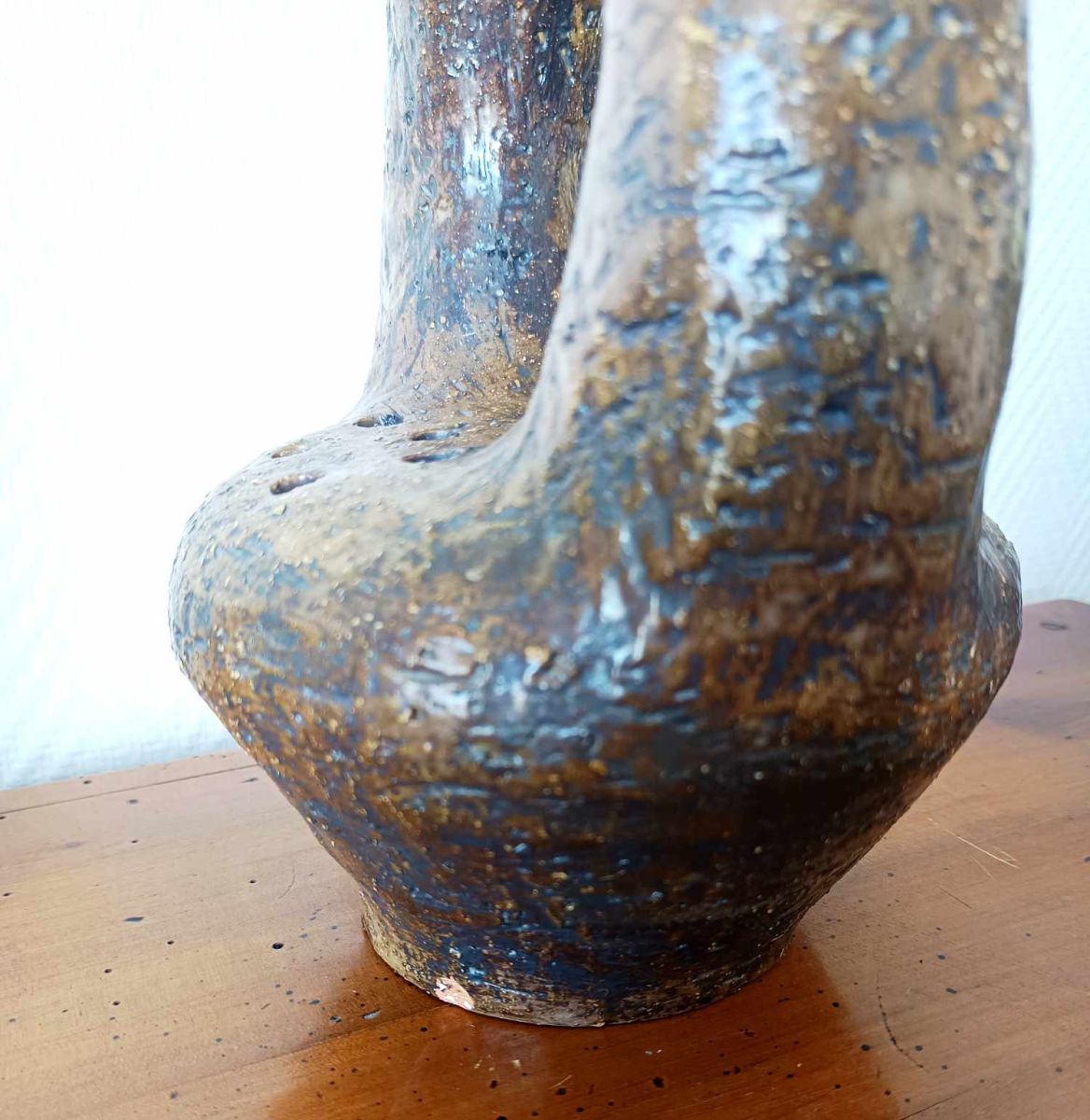 Pied de lampe en céramique de style brutaliste, travail vers 1960 signée en creux au revers (non identifié).