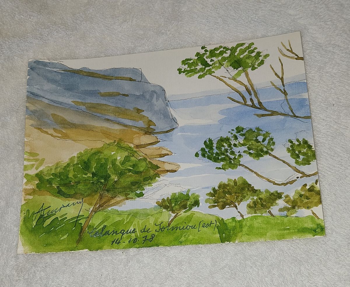 Aquarelle sur papier les Calanques de Sormiou Marseille 1978