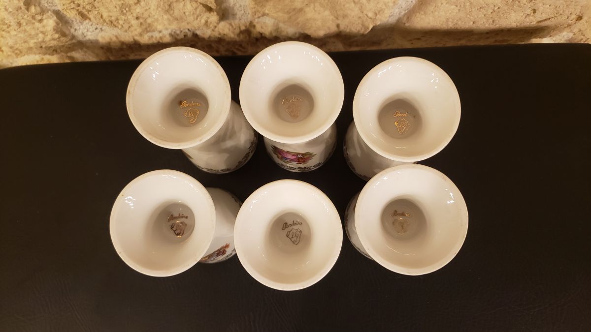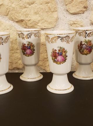Lot de 6 mazagrans en porcelaine style Fragonard