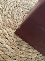 Boîte de rangement imitation cuir bordeaux avec liseré doré des annees 80.