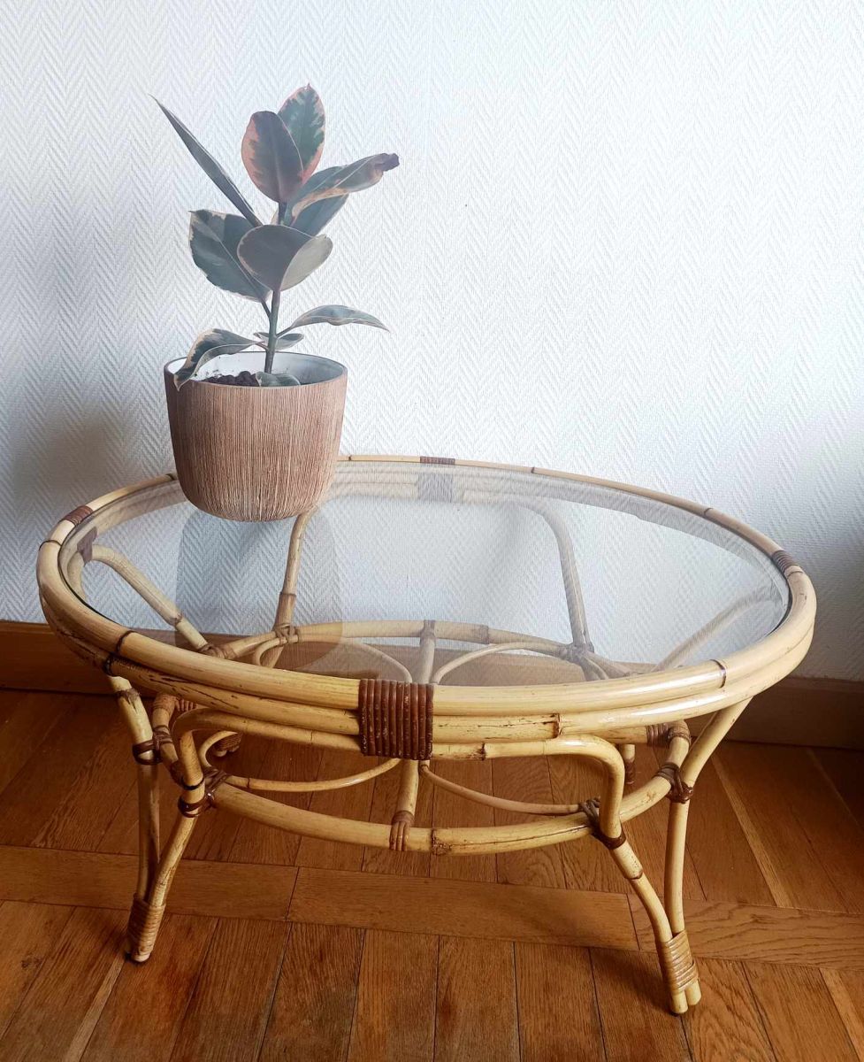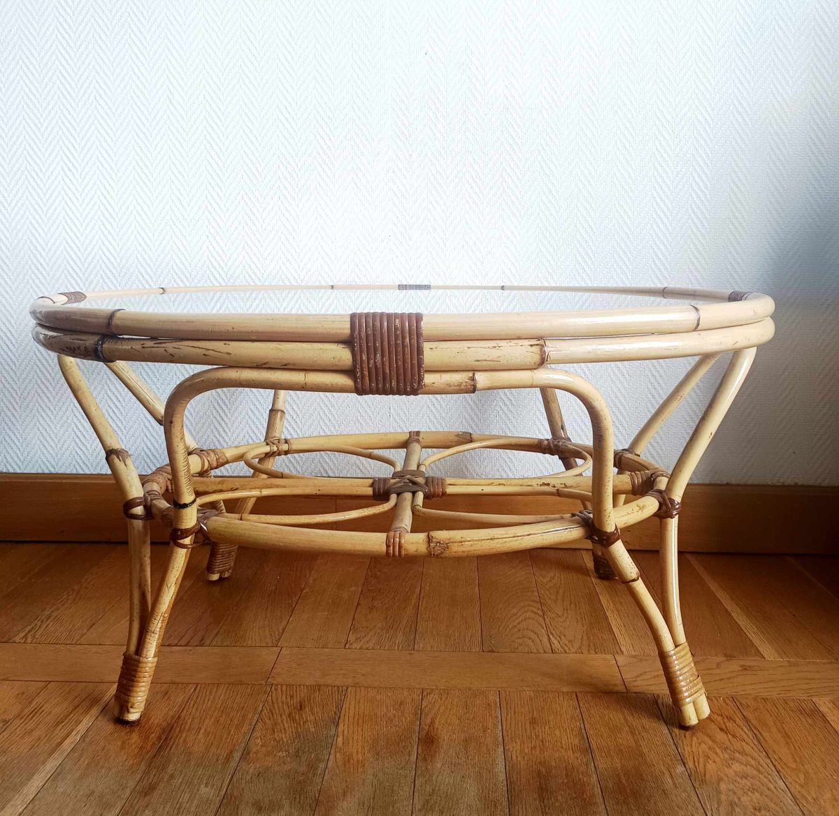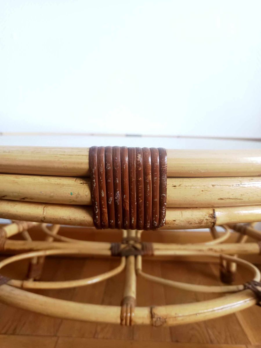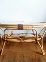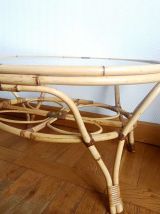 Table basse en rotin, travail vintage vers 1960 / 1970