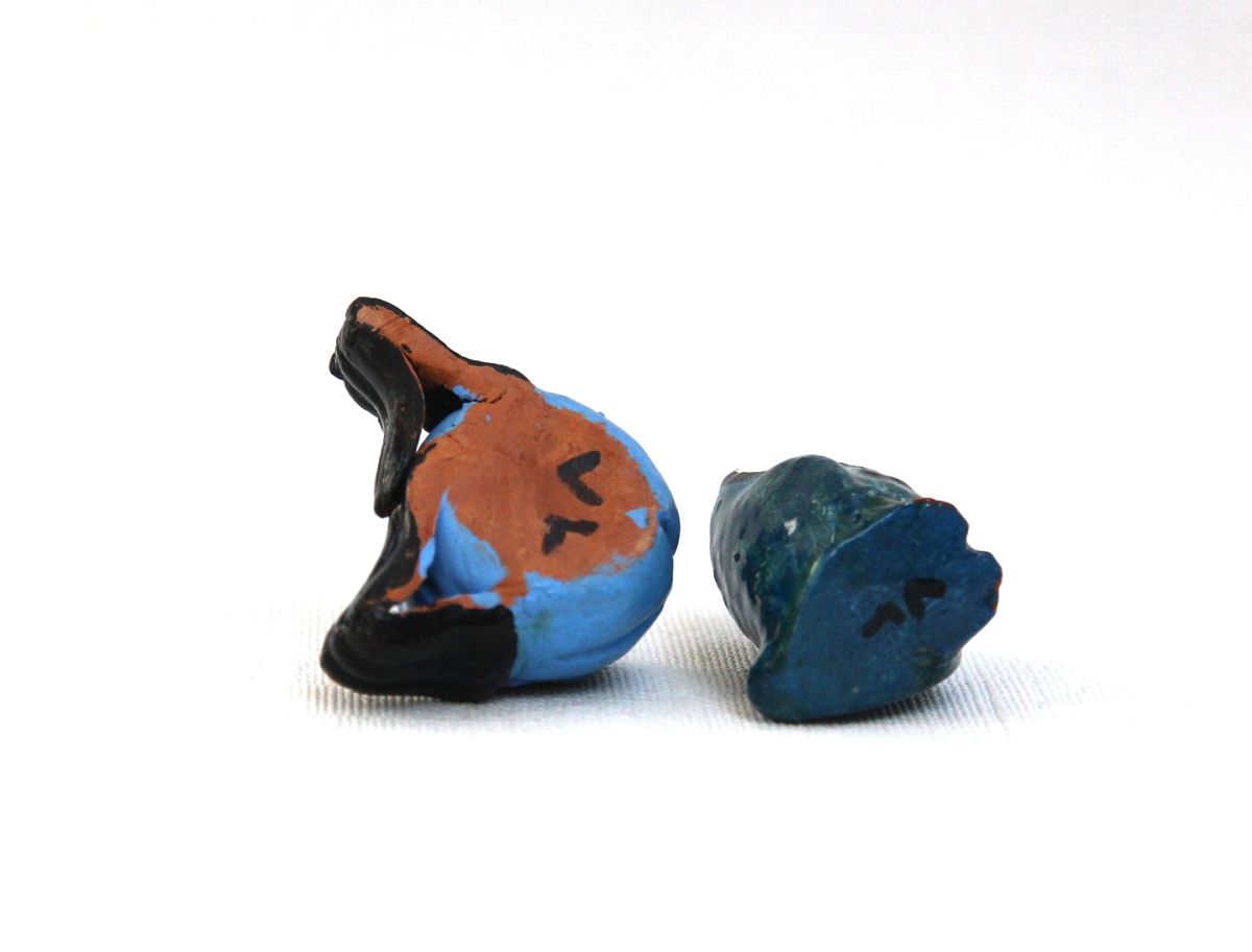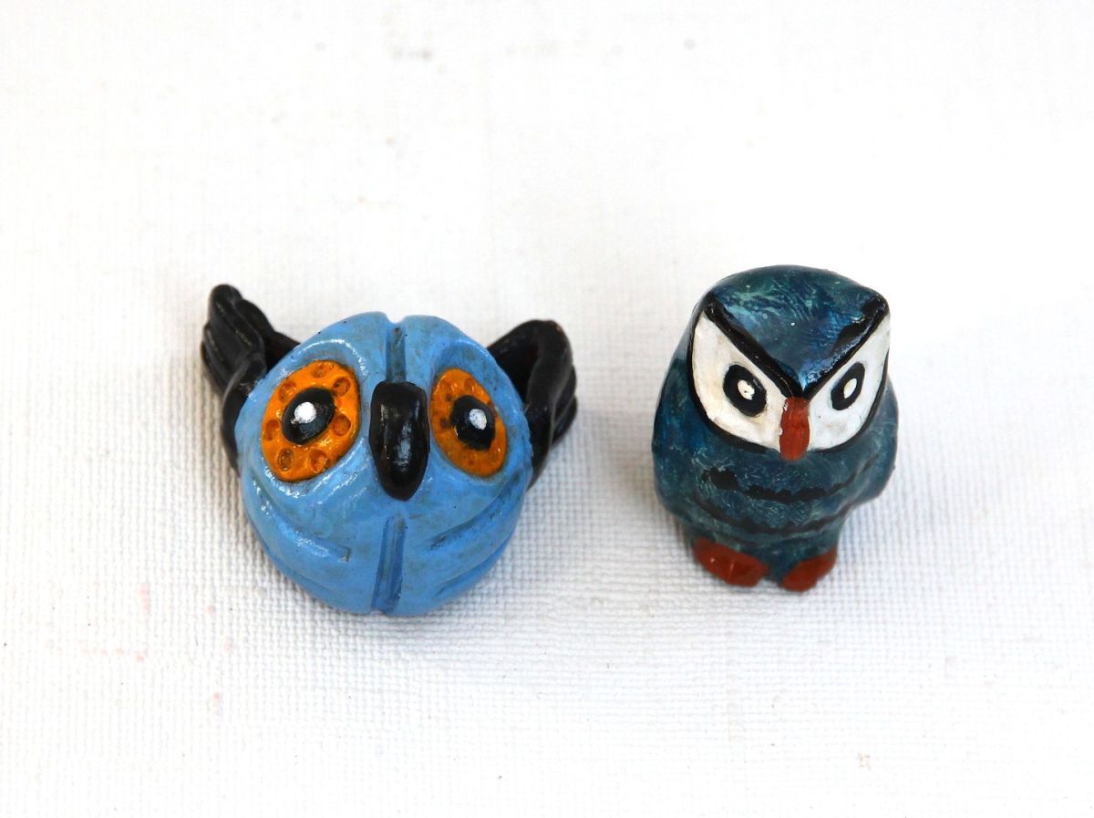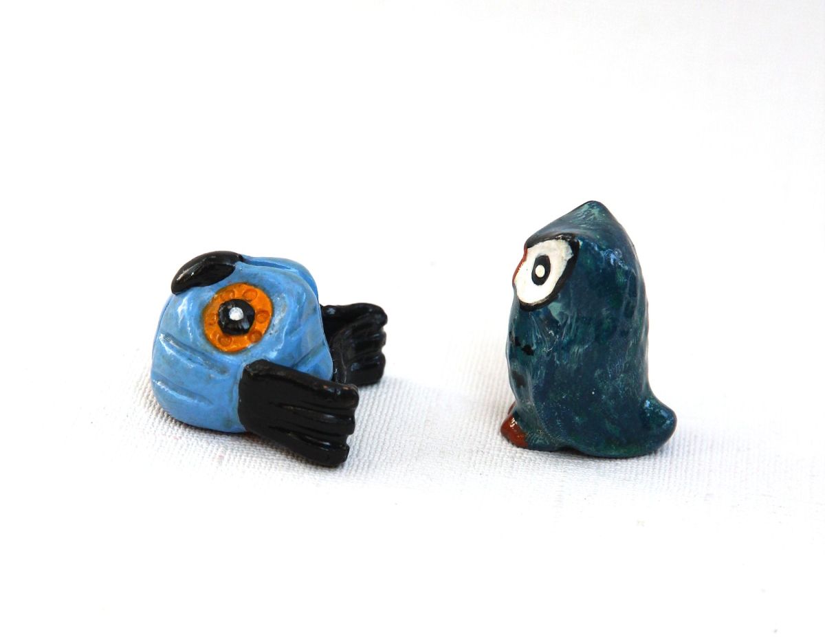 Deux chouettes miniatures bleues - Artisanat fait main - Pièces uniques.