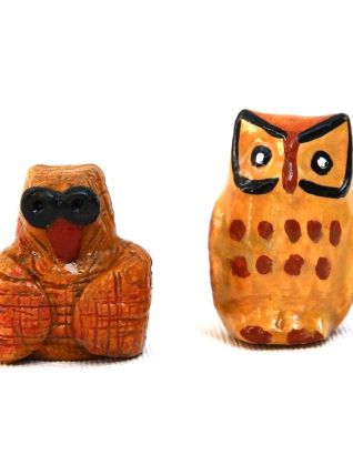 Deux chouettes miniatures artisanat fait main - Pièces uniques.