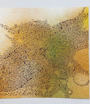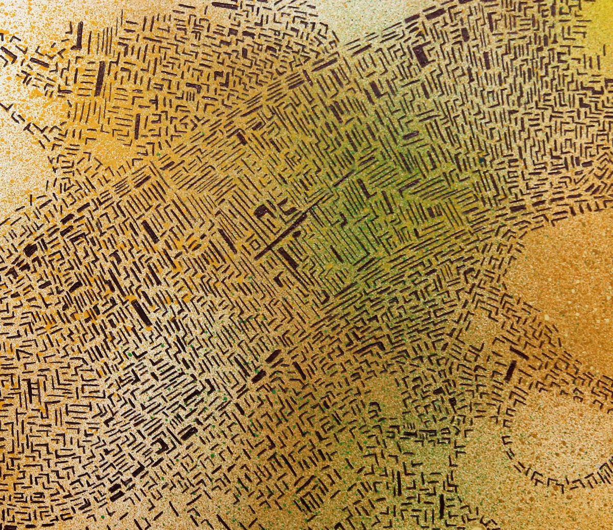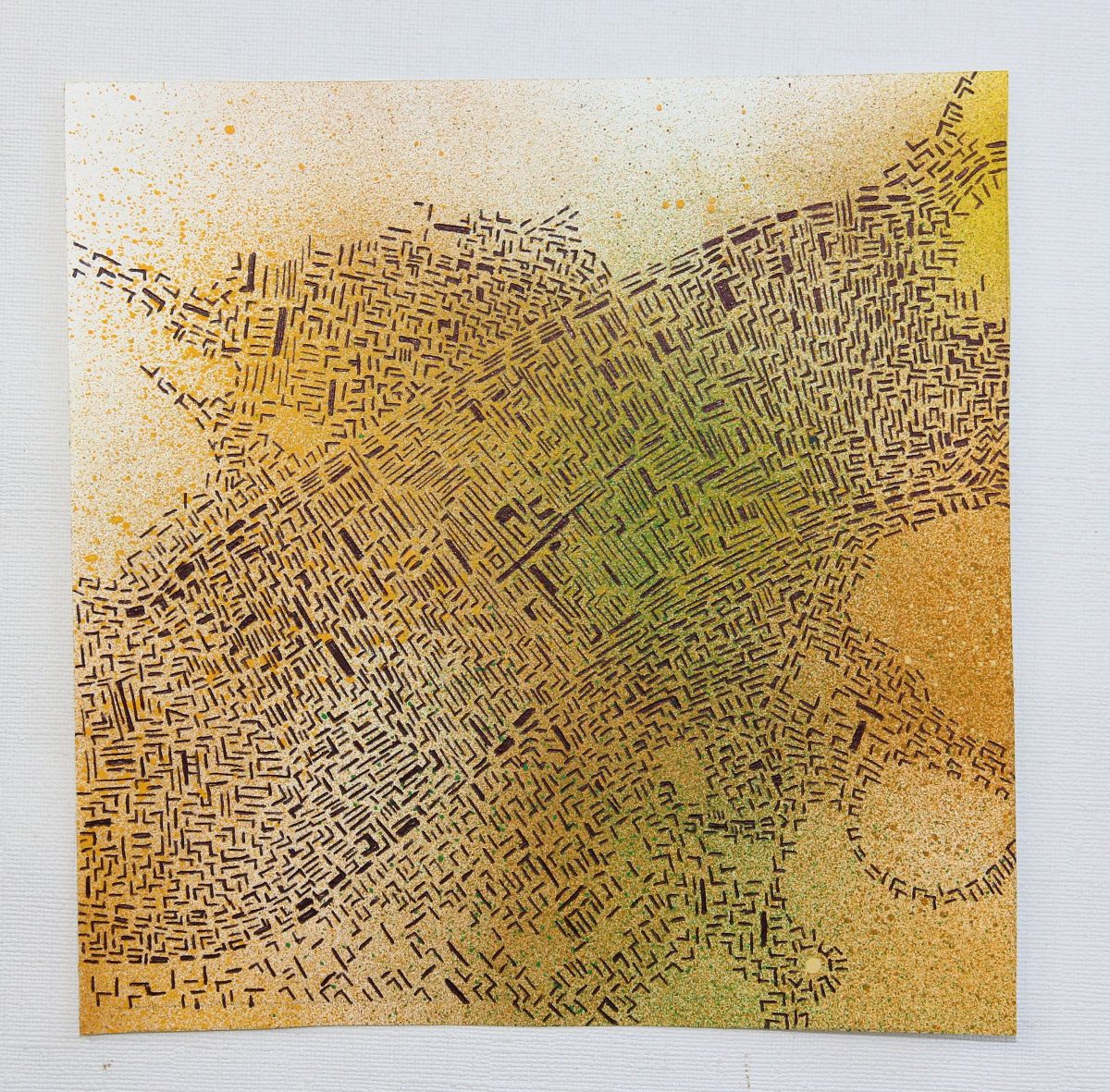 Dessin technique mixte : peinture aérosol et stylo bille sur papier épais..