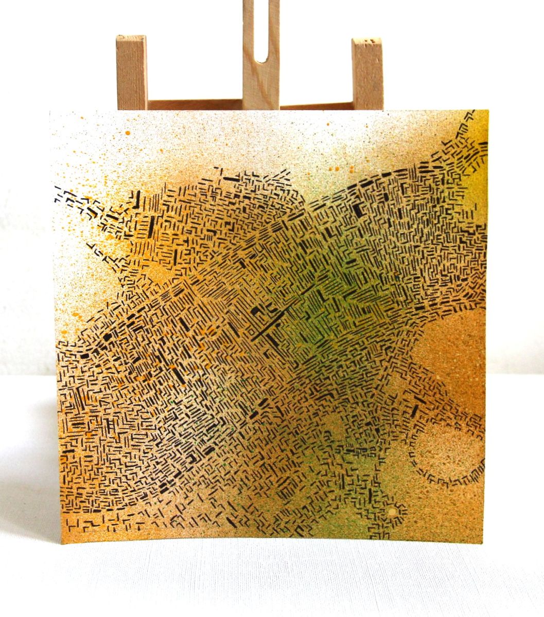 Dessin original art abstrait, art optique - technique mixte - Pièce unique.