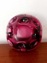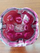 Cendrier en verre de Murano rose et transparent, travail de bulle en creux sur la partie basse.