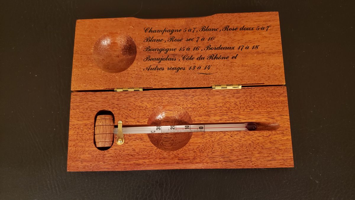 Thermomètre à vin dans un élégant boîtier en bois