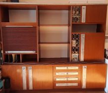 Extérieur bois peint et intérieur en bois naturel et étagère en osb, chant en Formica, d’origine.