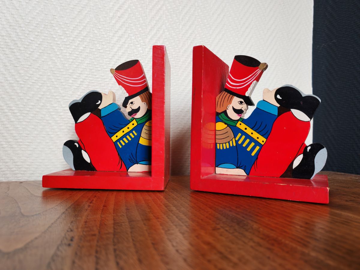 Serre-livres soldats en bois vintage