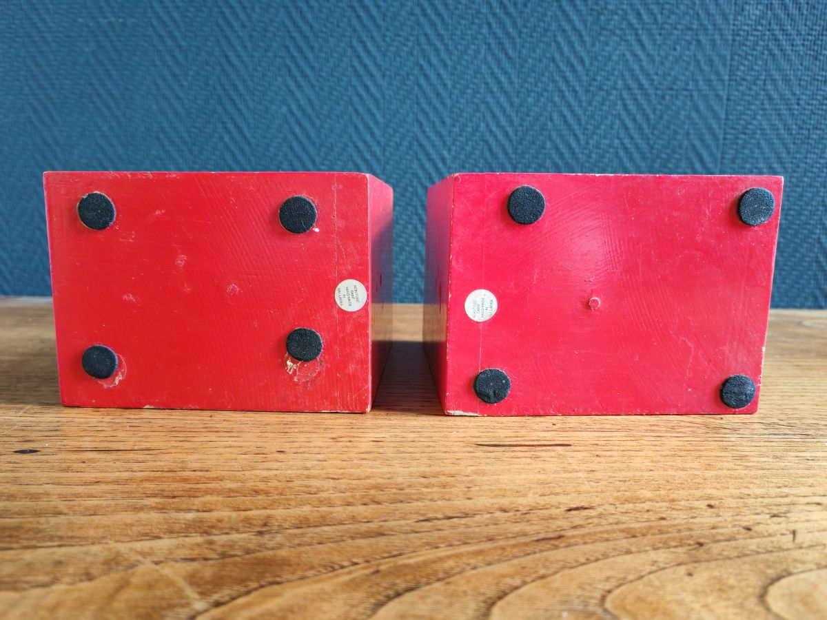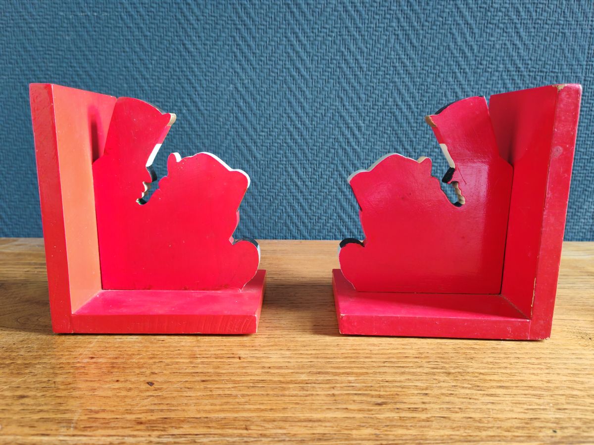 À vendre ce bel ensemble de serre-livres en bois vintage fabriqués à la main.