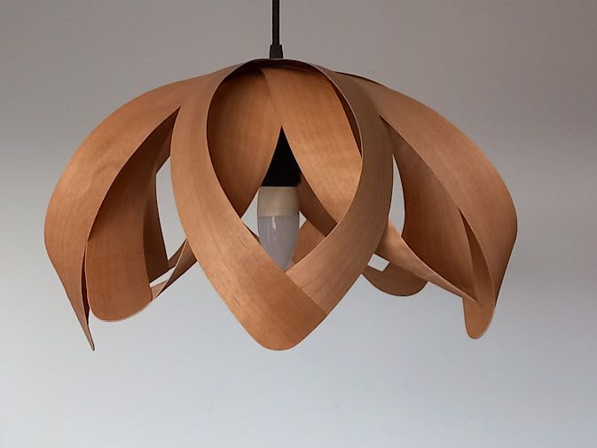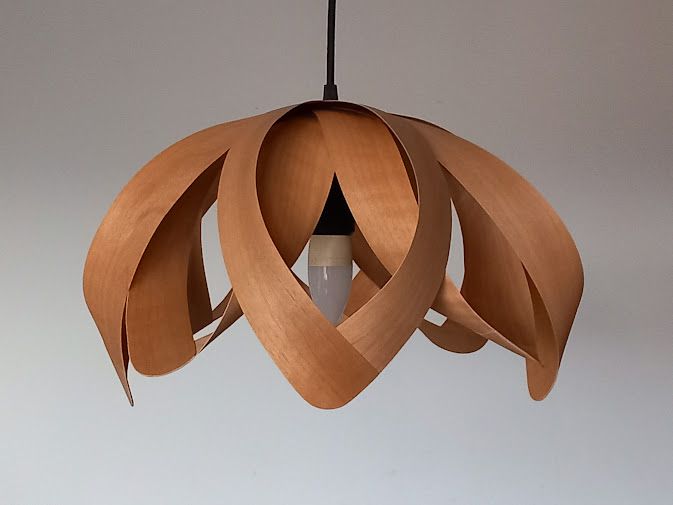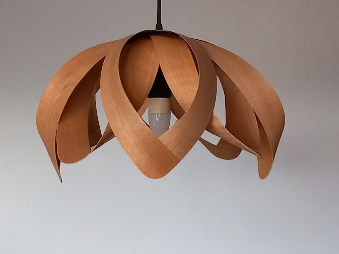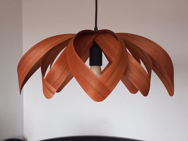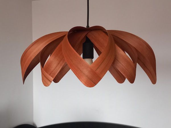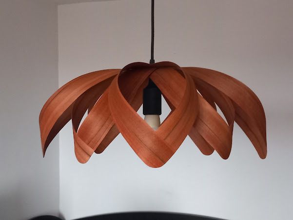 Cette lampe suspendue en bois de noyer a un diamètre de 45 cm et une hauteur de 20 cm. Prise E 27 avec longueur de câble réglable.