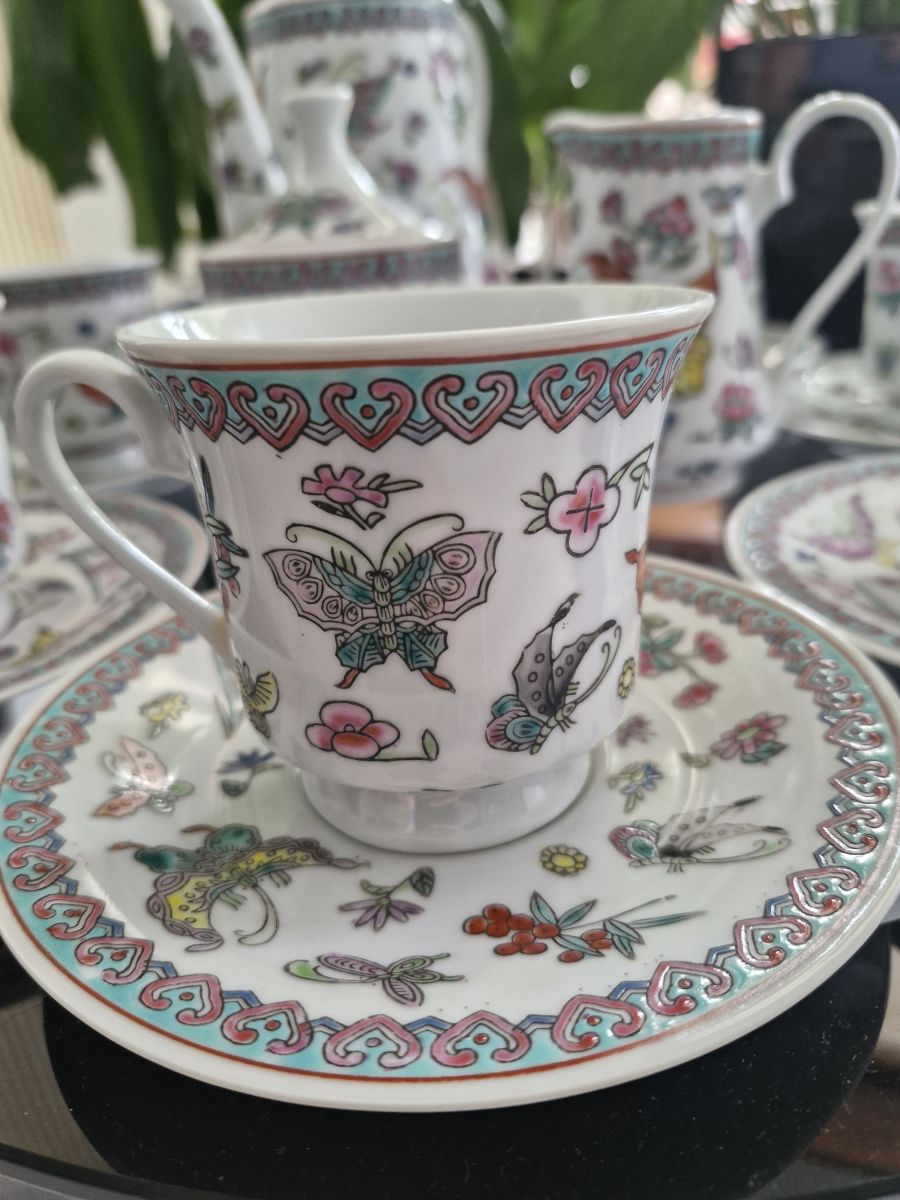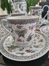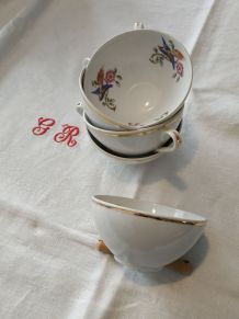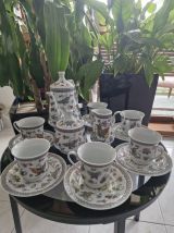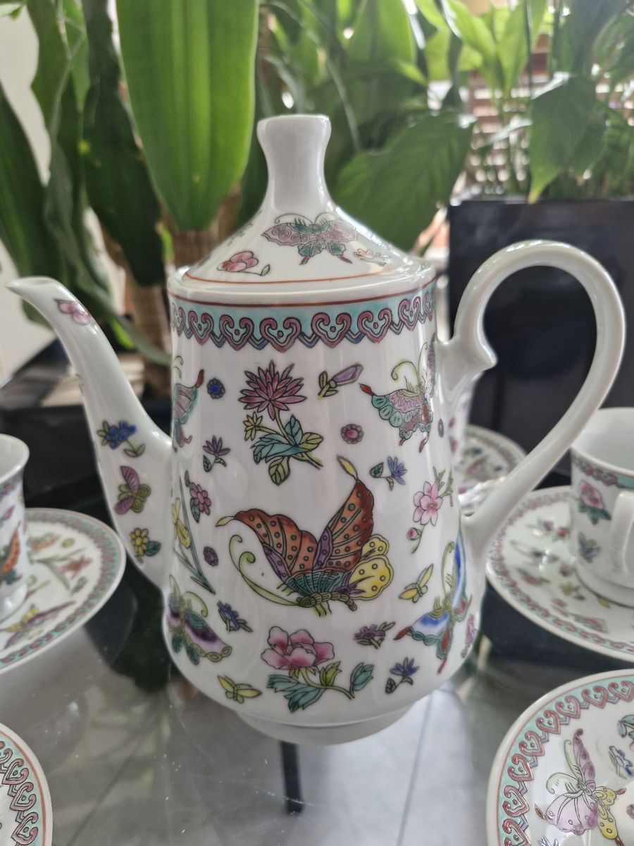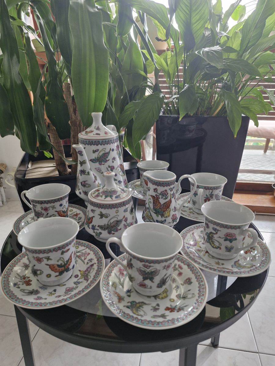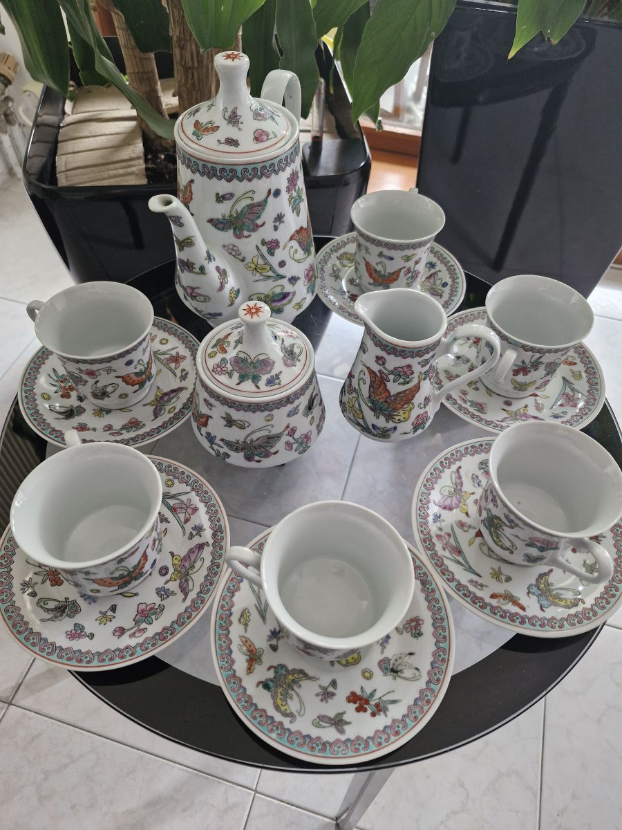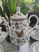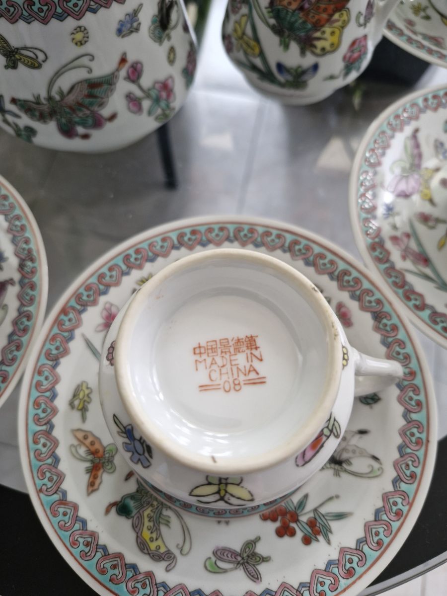 Une théière, un pot à lait, un sucrier, 6 tasses avec soucoupes