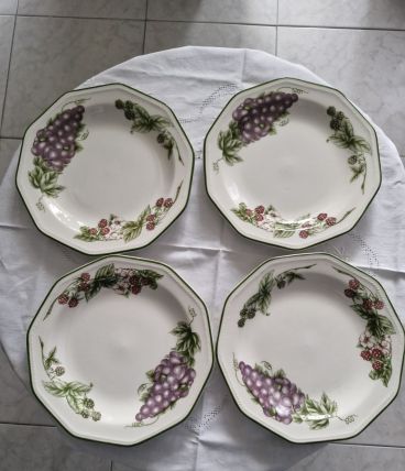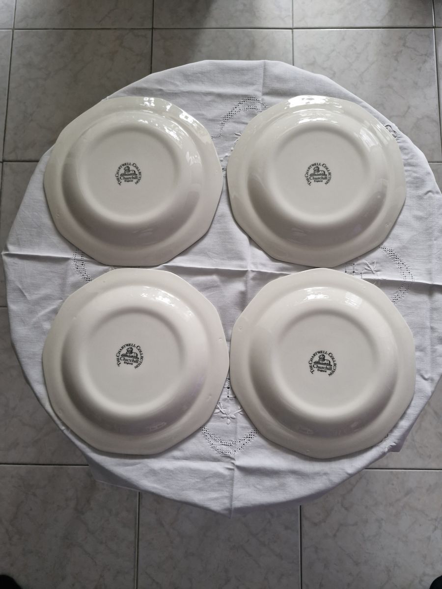 4 anciennes assiettes à dessert vintage années 1970 en céramique anglaise de la prestigieuse manufacture Churchill England, The Chartwell Collection.