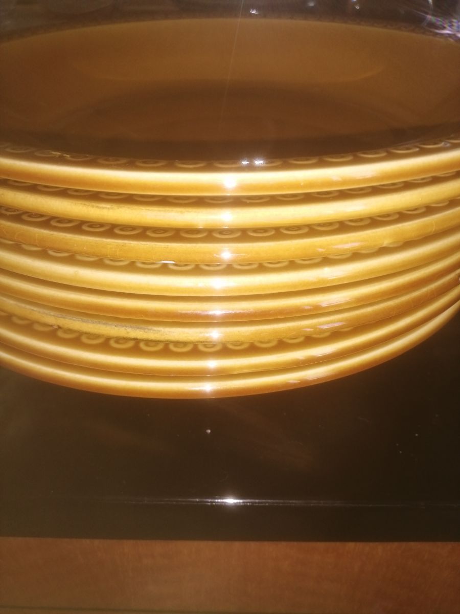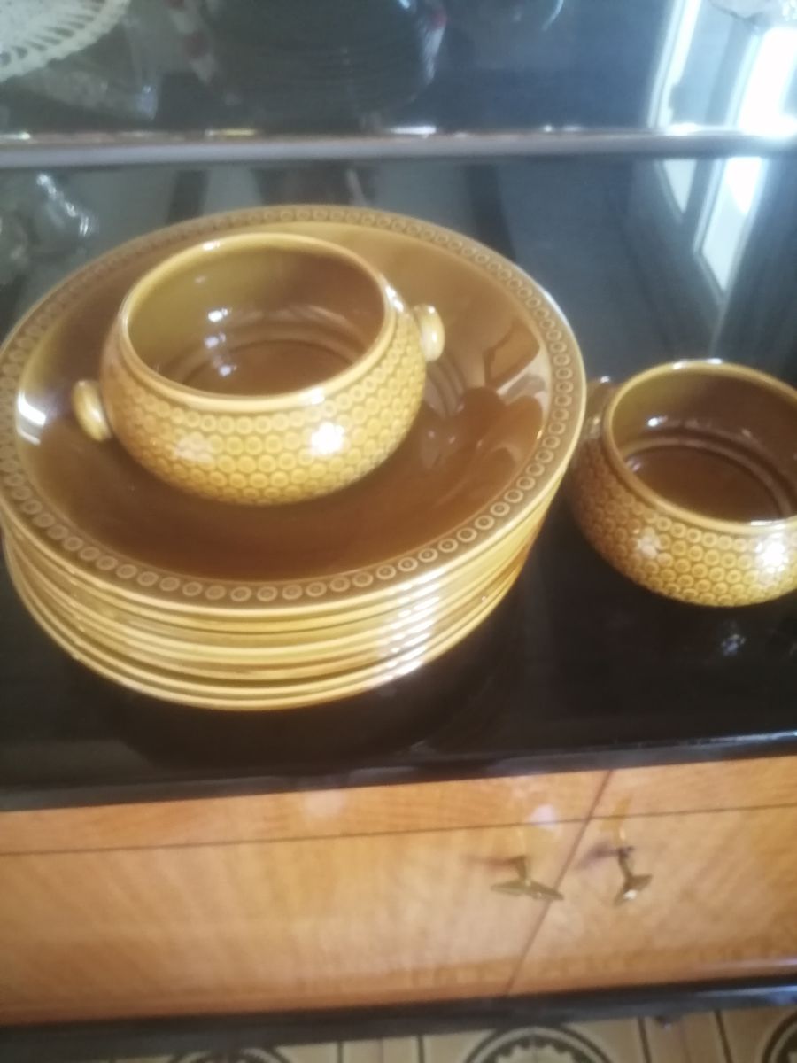 Service à couscous en faïence de Gien datant des années 60 70 comprennant le plat de service, les 8 assiettes et deux bols pour raisins pois chiches ou autre