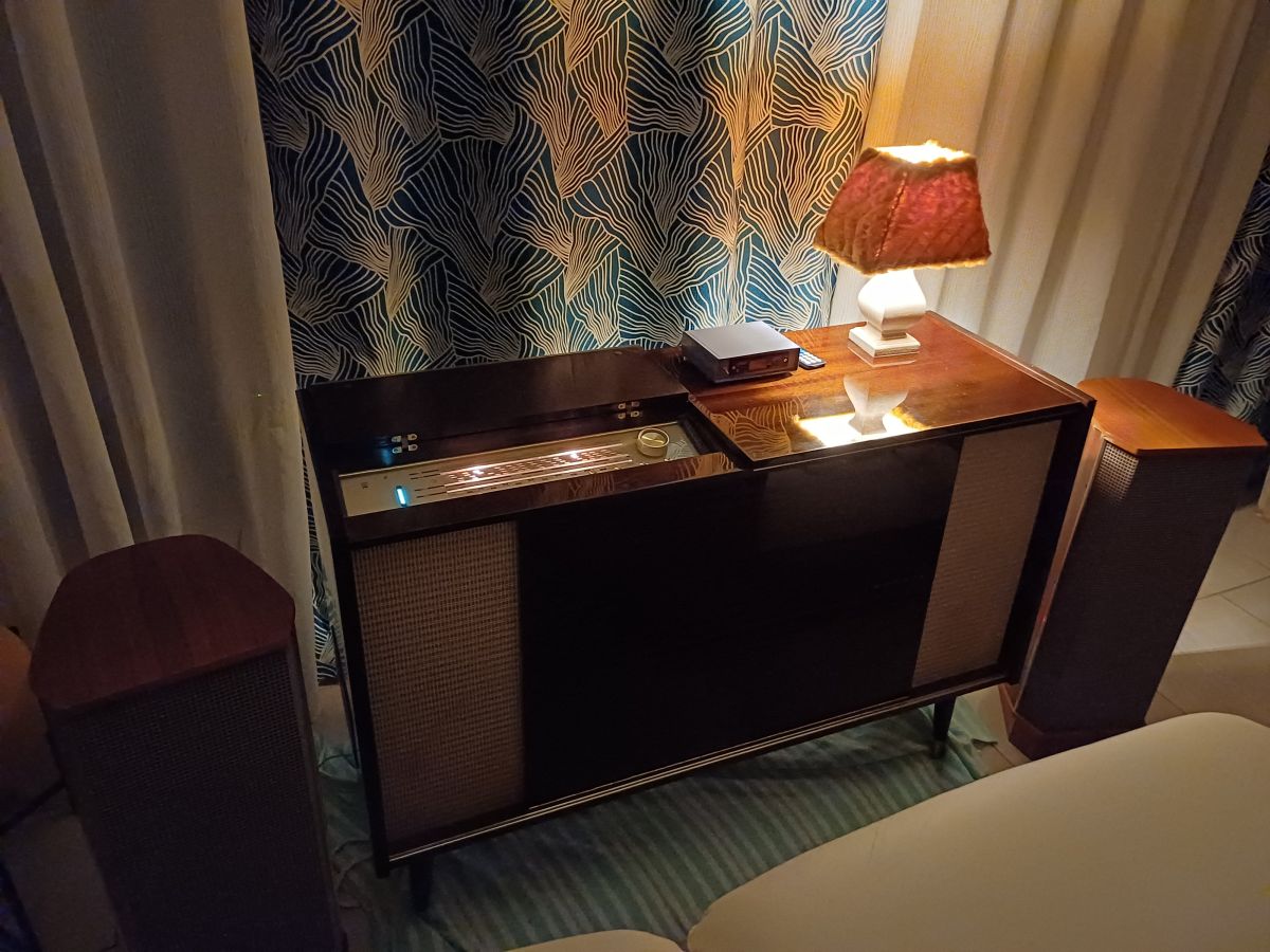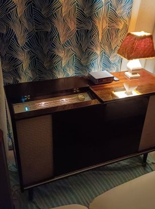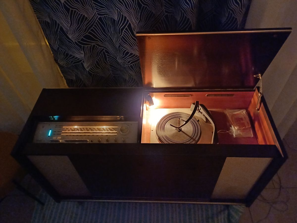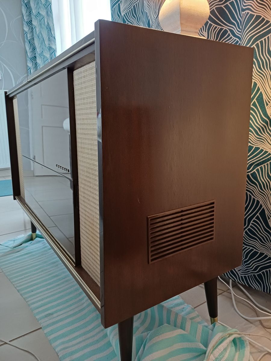 Radio fonctionnelle, la platine vynile tourne mais l'automatisme du bras est à régler.