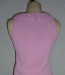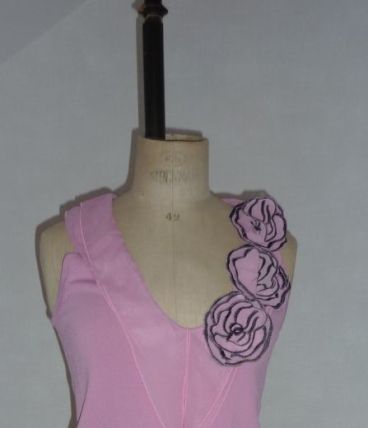 Top sans manche, encolure en V bordée de voile devant et dos. Application de fleur en voile bordé noir sur l'épaule. Taille 3.