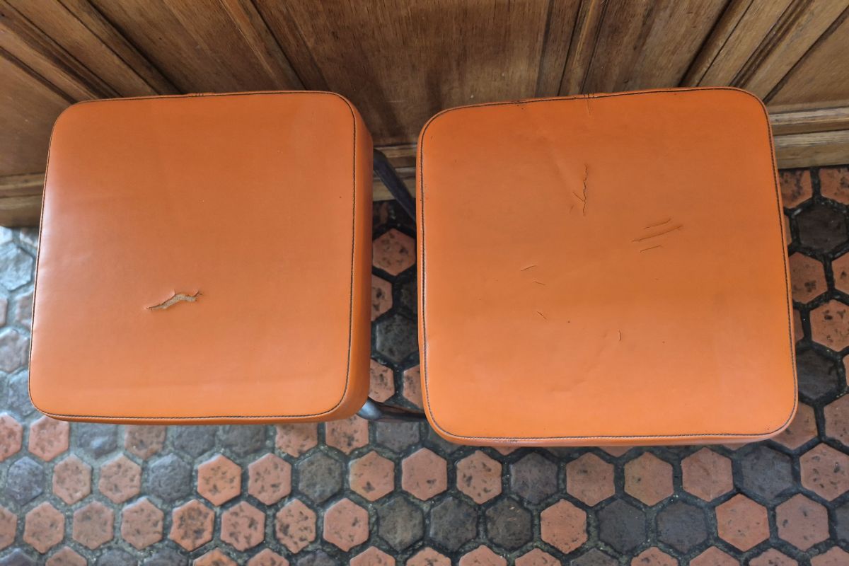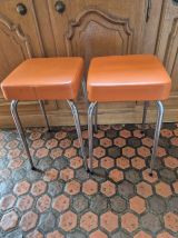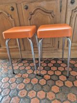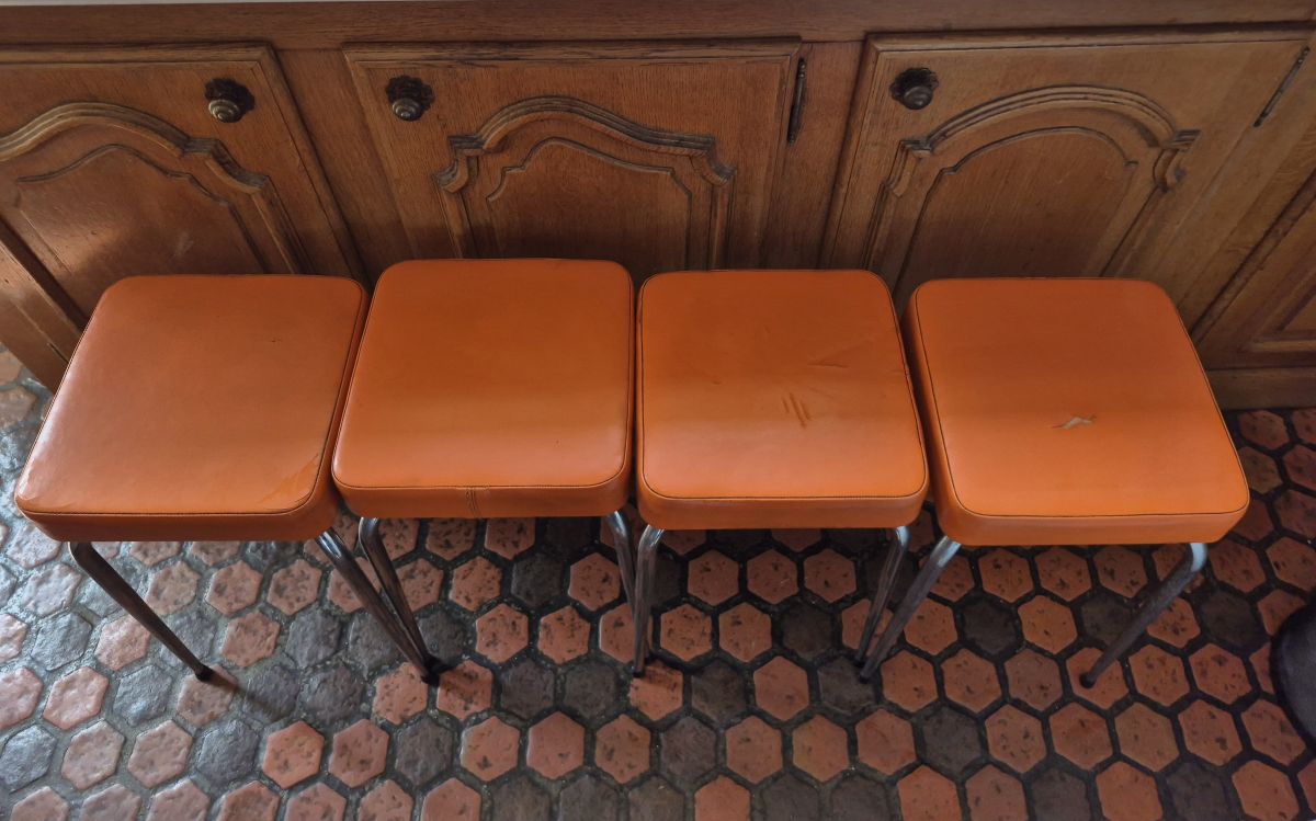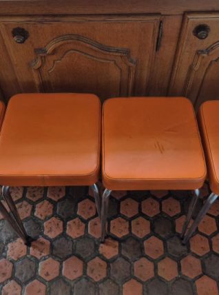 4 Tabourets vintage 60's en skaï orange