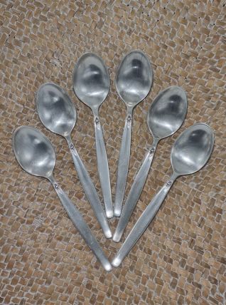 Ensemble de 6 cuillères à café ou à dessert en métal argenté.